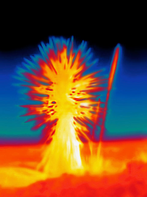 Borderlands (2024) is a series of thermal images that reframes the cultural understanding of borders as sites of surveillance by focusing instead on the intrinsic character of the landscapes along the US and Mexico divide near Marfa, Texas where the photographer Nina Dietzel is based.