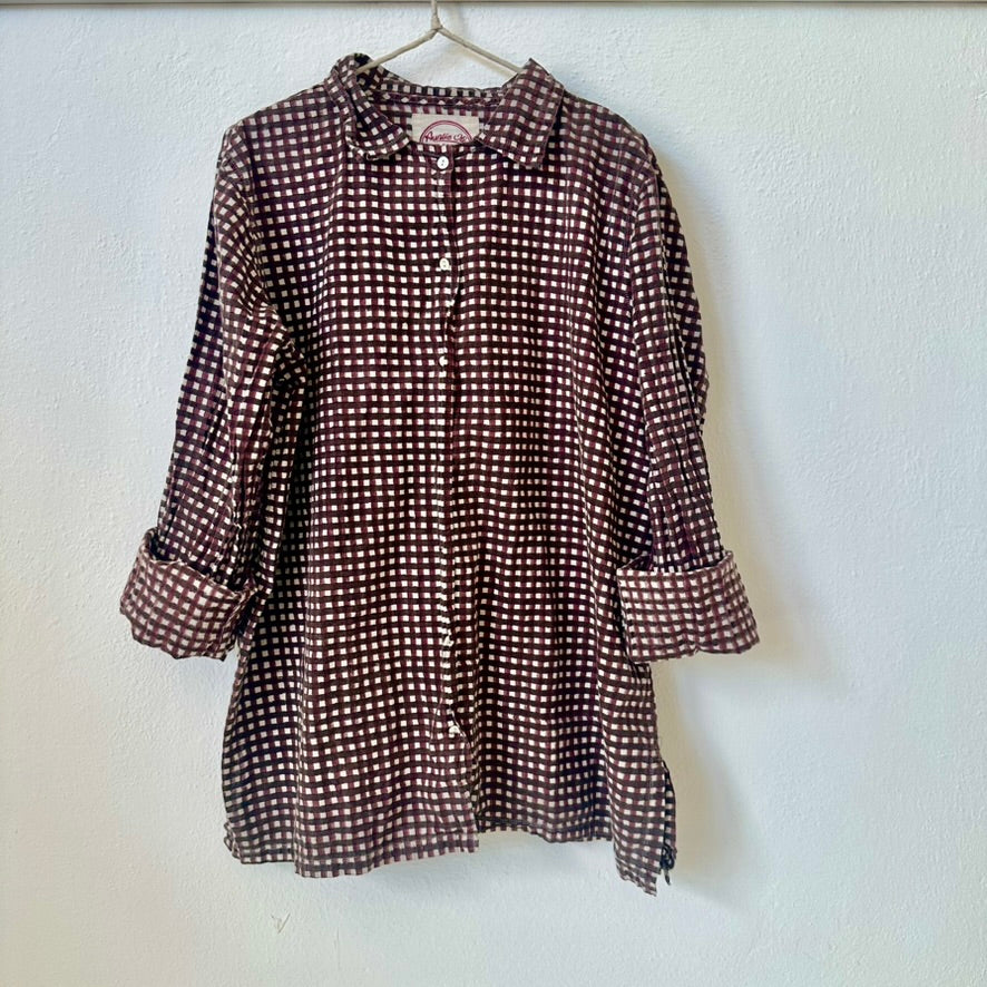 Auntie Oti Button Shirt: Brown + Maroon Gingham