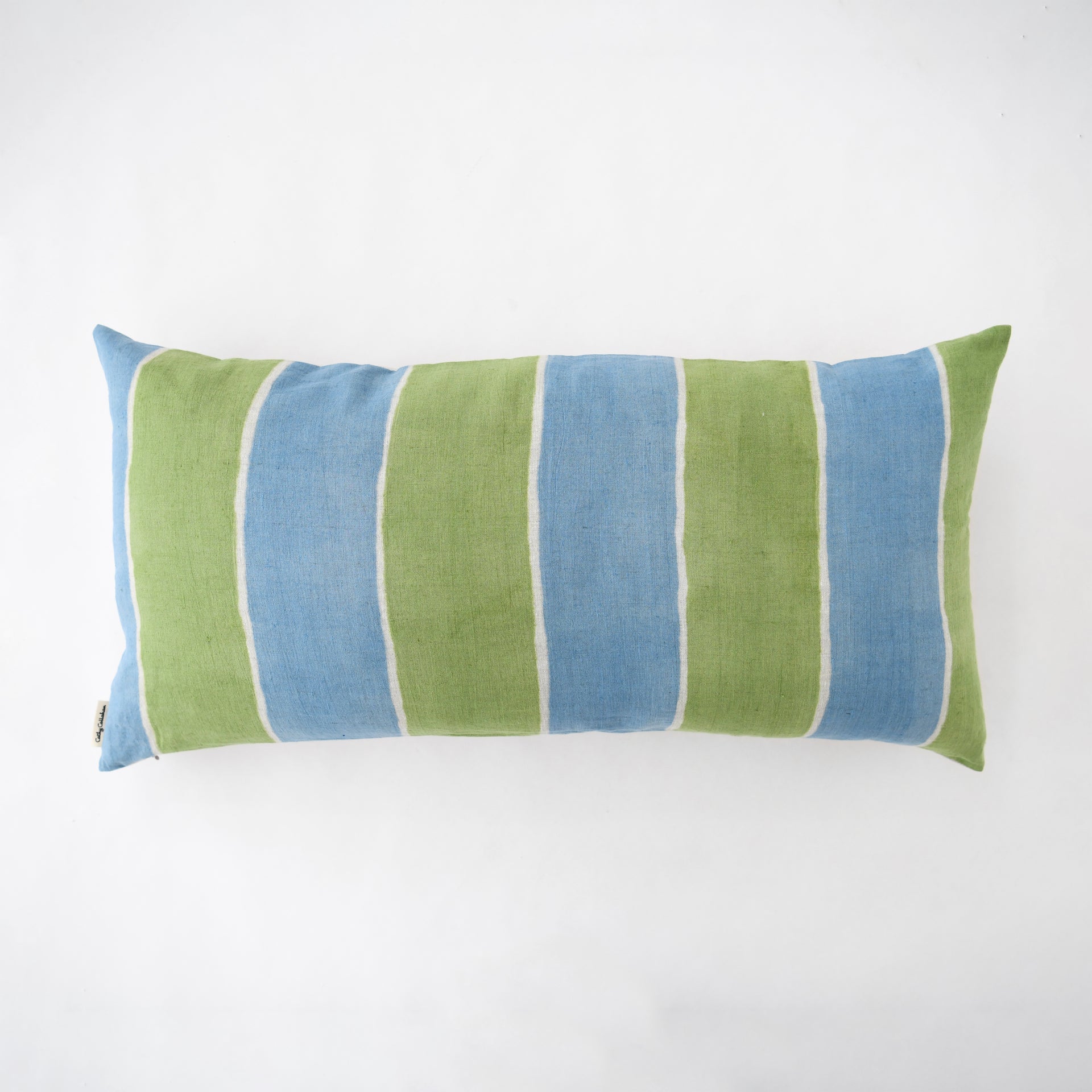 Cathy Callahan 18" x 36" Hand Painted Bolster - Sky Matcha Stripe