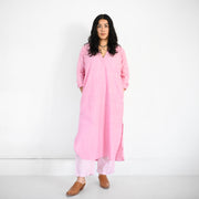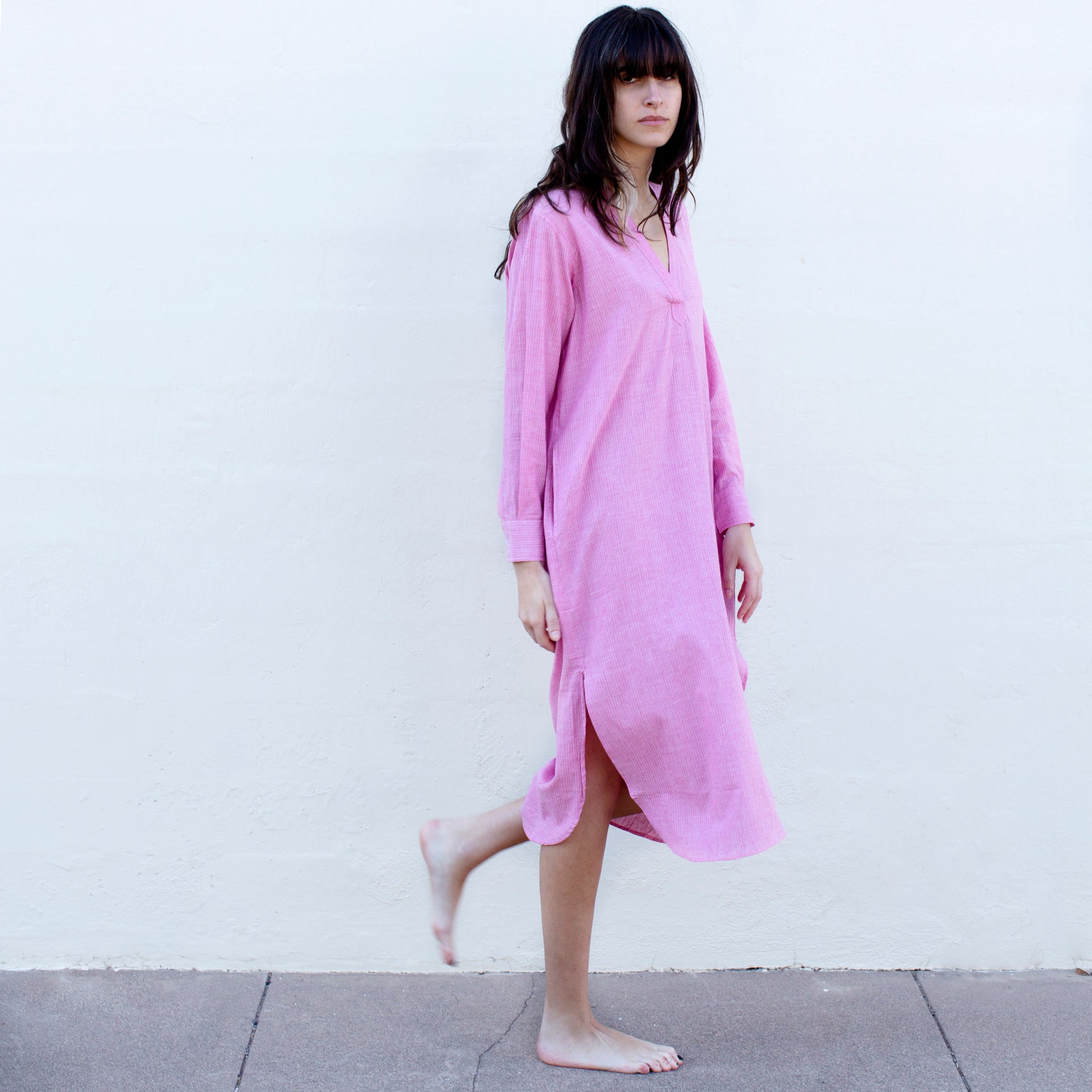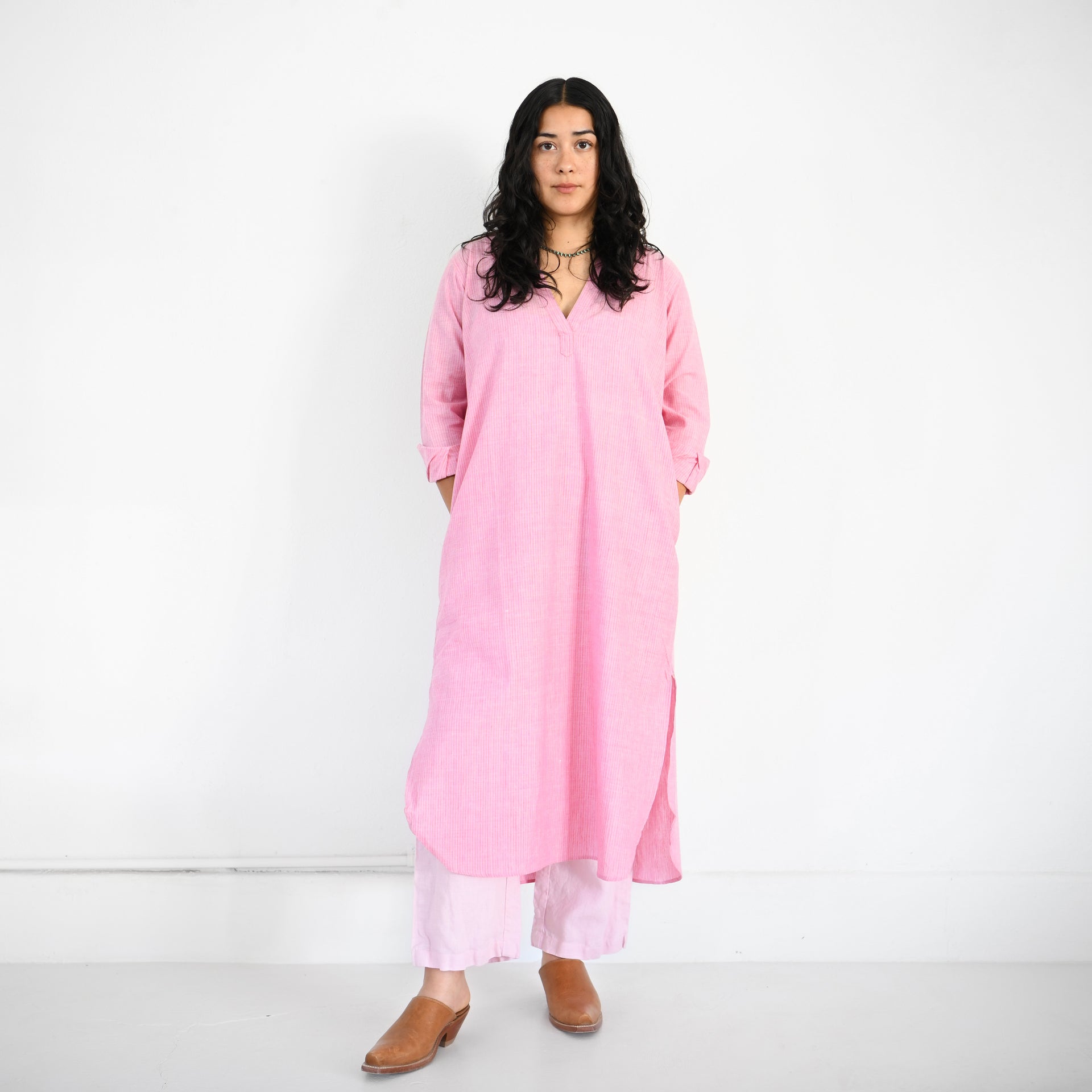 Khadi Tunic Dress - Rose + Orange Sheer Pin Stripe