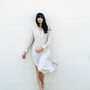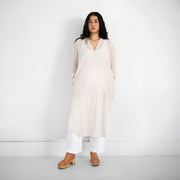 Khadi Tunic Dress - Tan + Cream Sheer Stripe