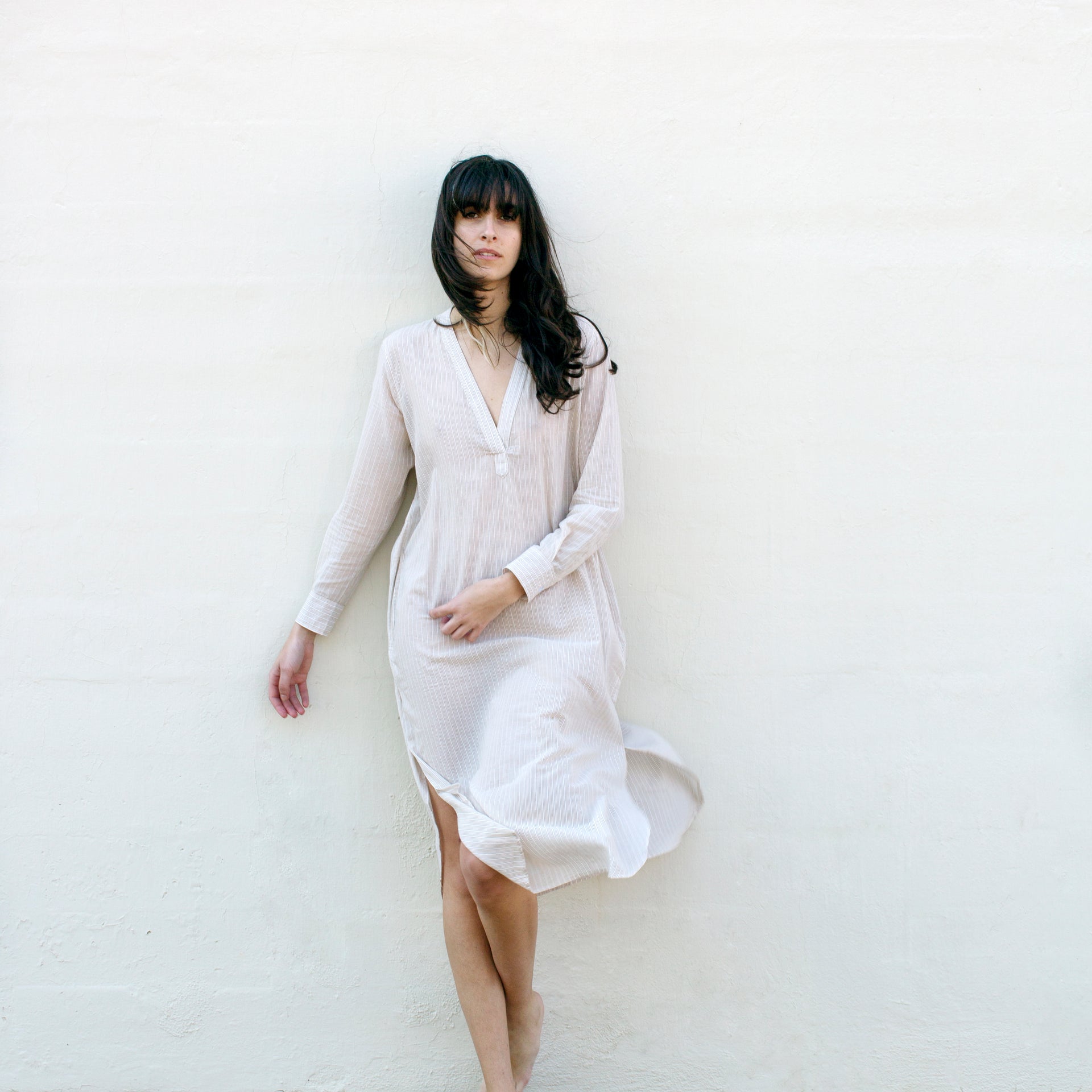 Khadi has long been known for its ability to keep the wearer warm in the winter and cool in the summer. The inherent variances of the fabric reflect the beauty of the involved, handwoven Khadi process. This sheer hand-woven fabric has a super soft feel-perfect for desert summer days.