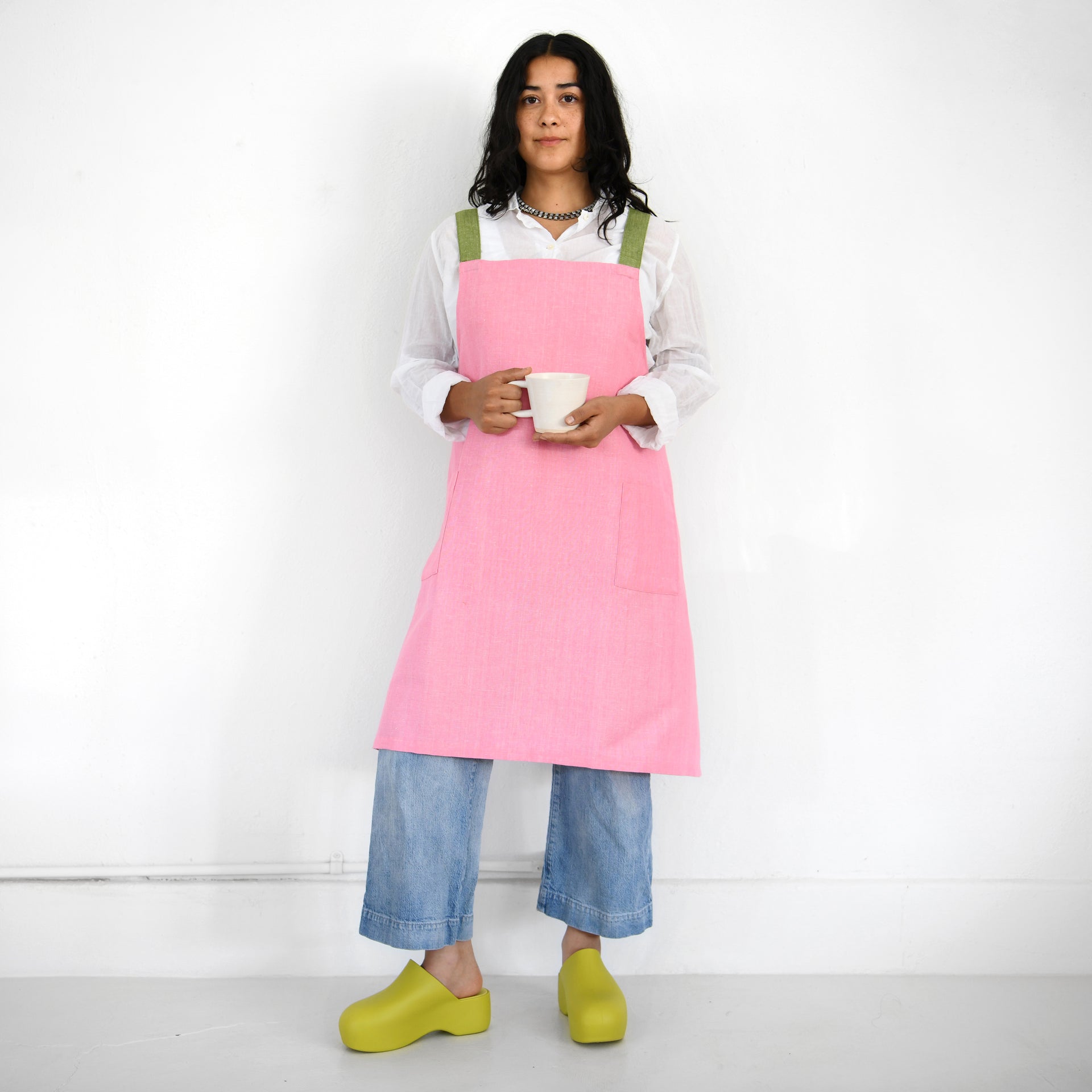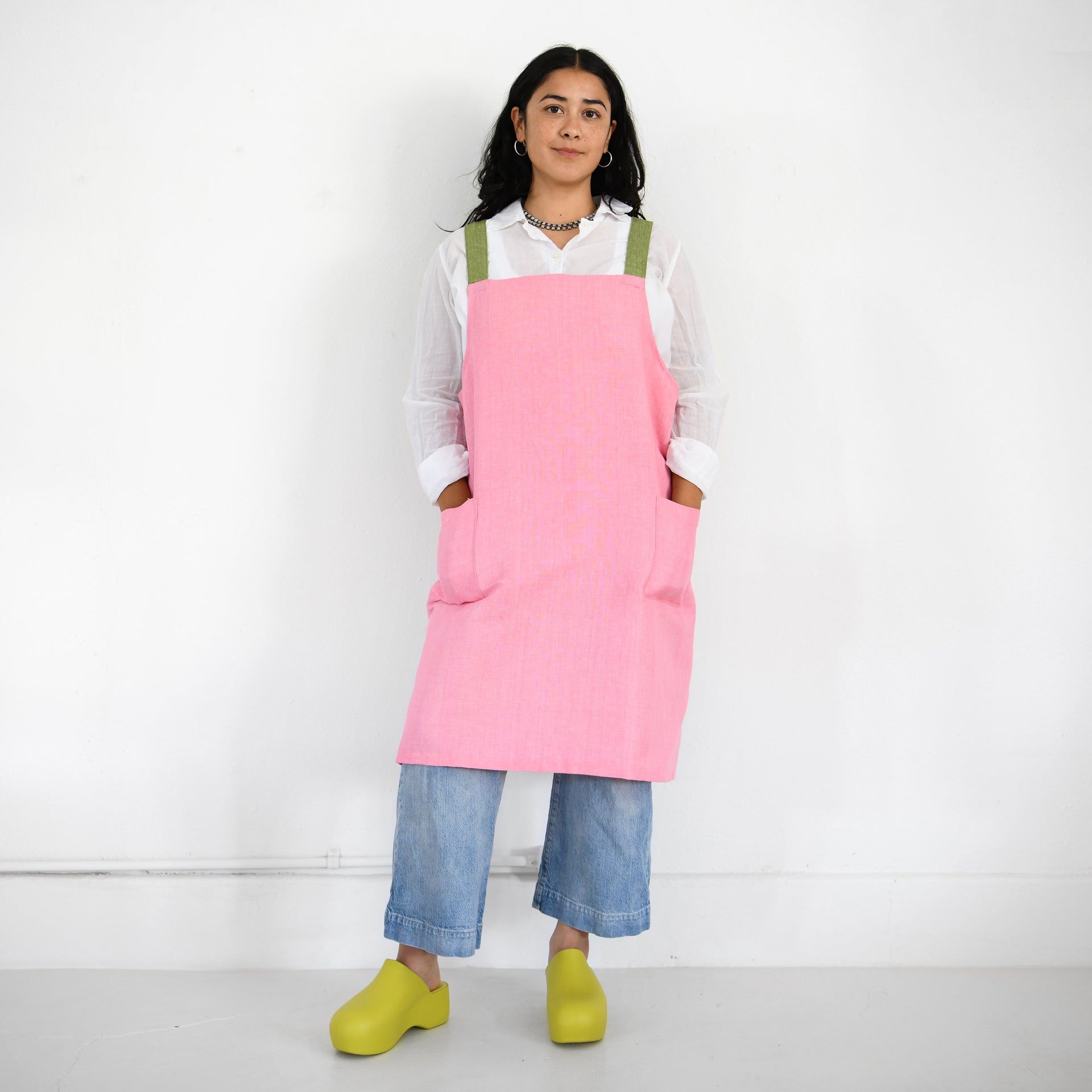 Garza Marfa Linen / Cotton Crossback Apron - Rosa + Avocado