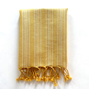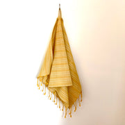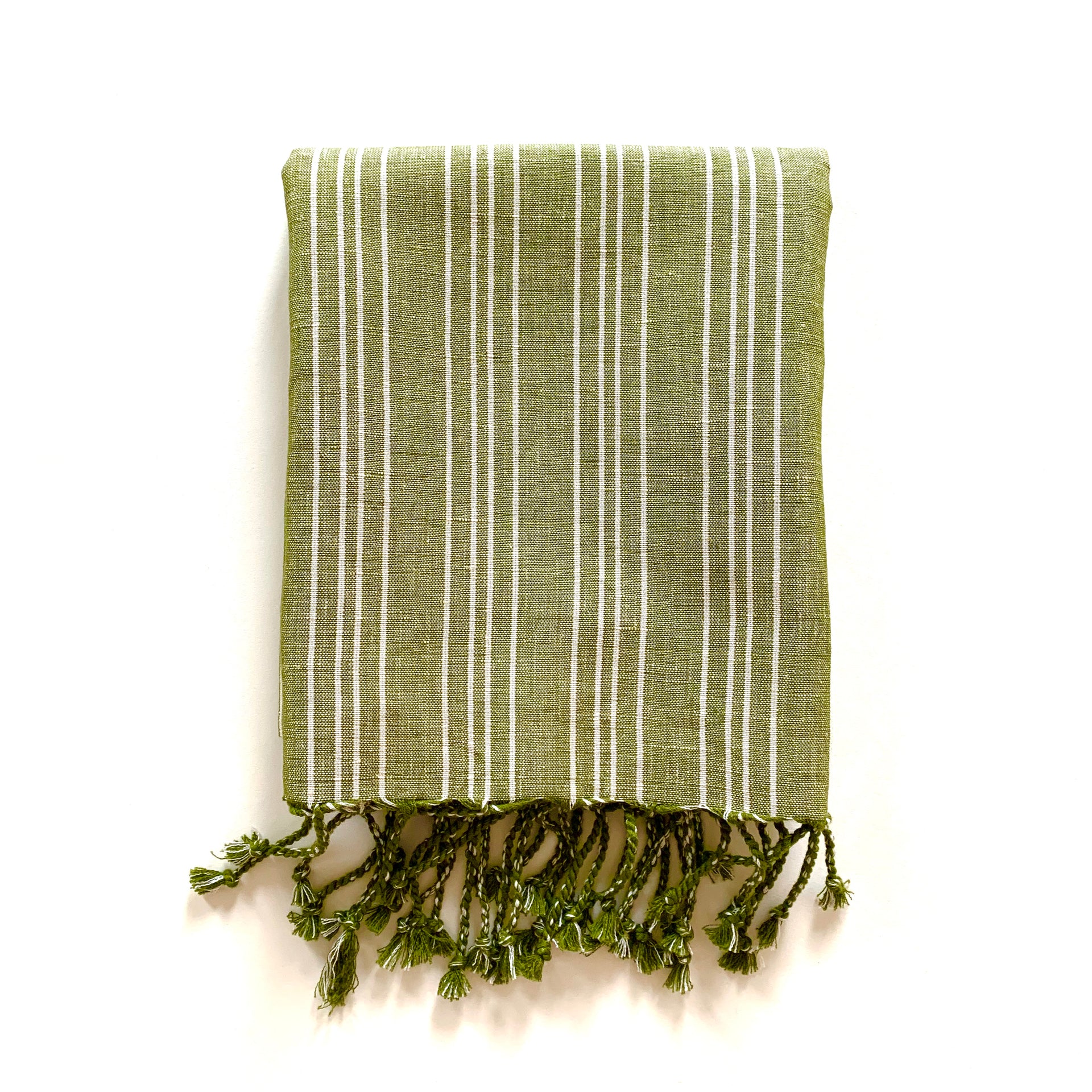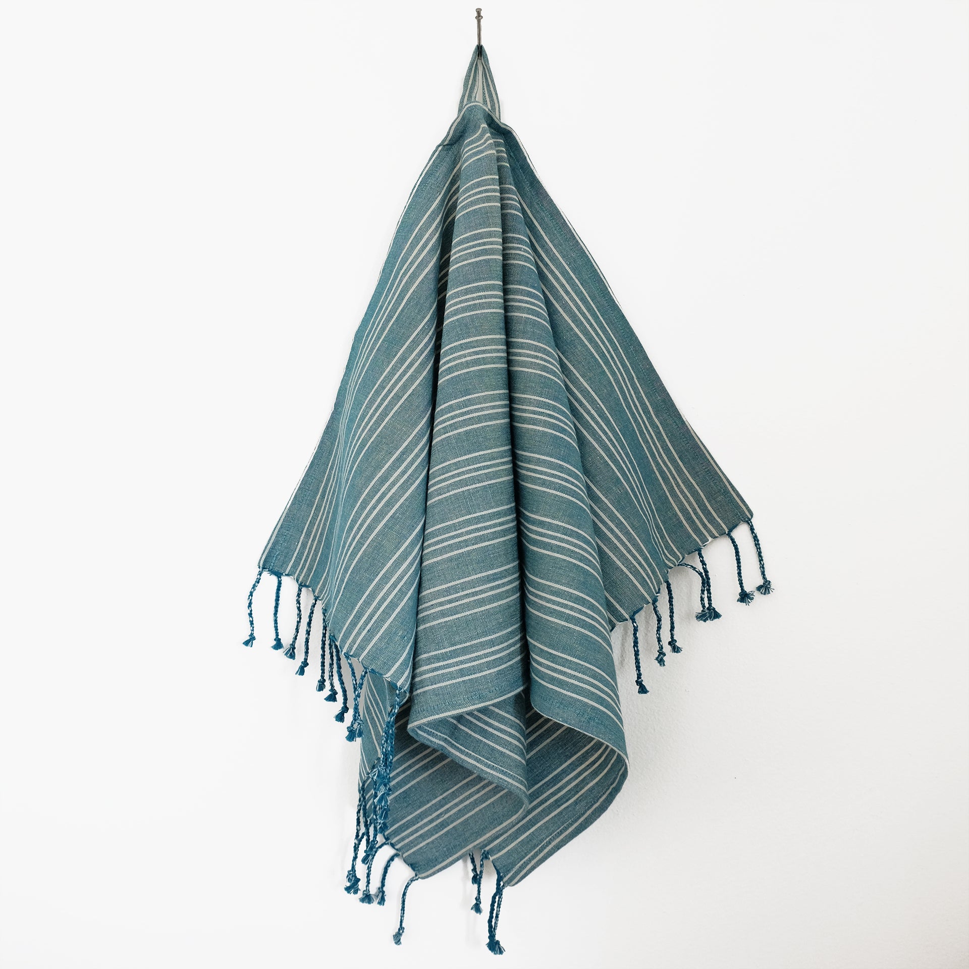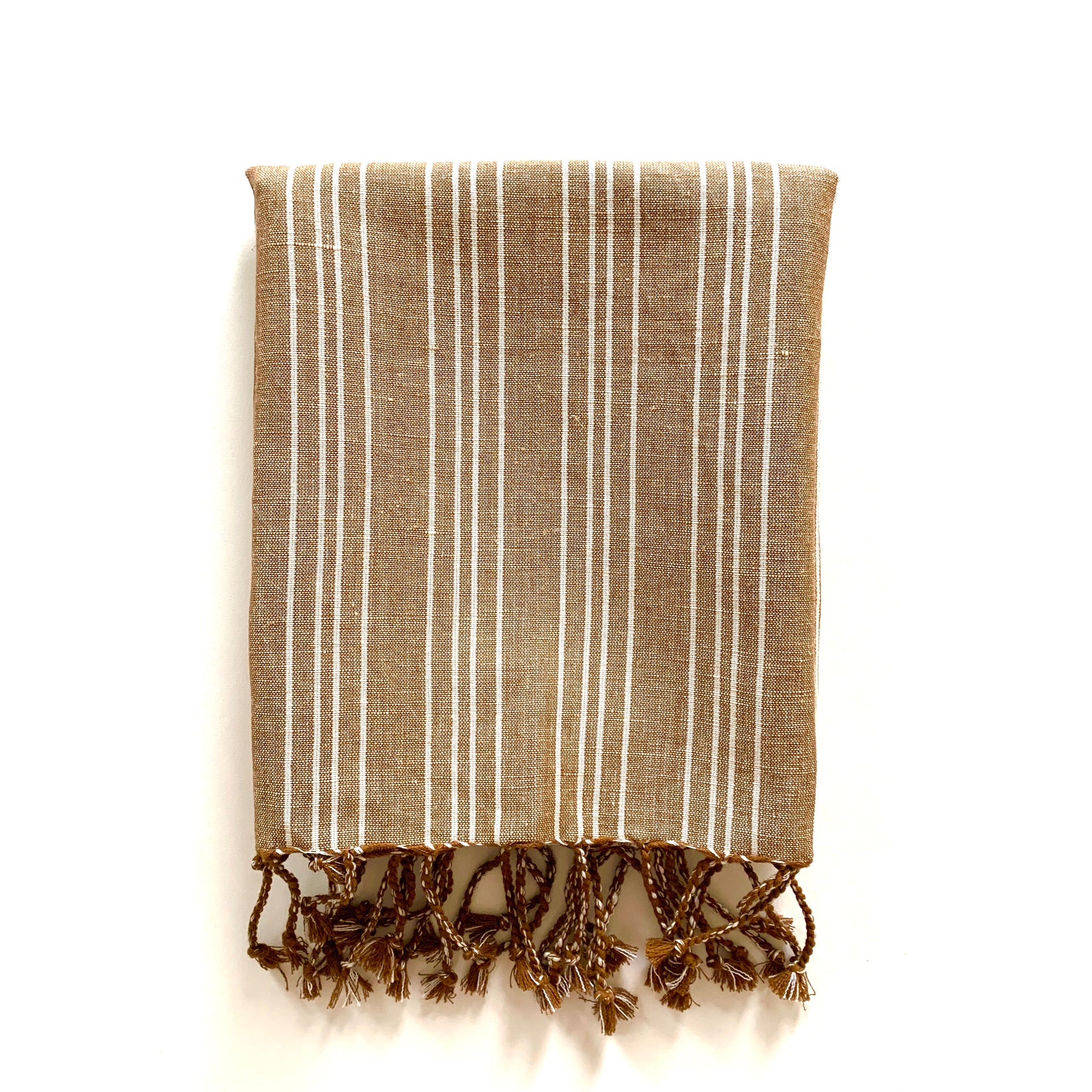 Our Linen / Cotton Small Ticking Hand Towel is woven exclusively for us. Hand-spun yarn lends itself to a luxe, vintage feel. The linen / cotton weave is very absorbent and gets softer every time you wash it.