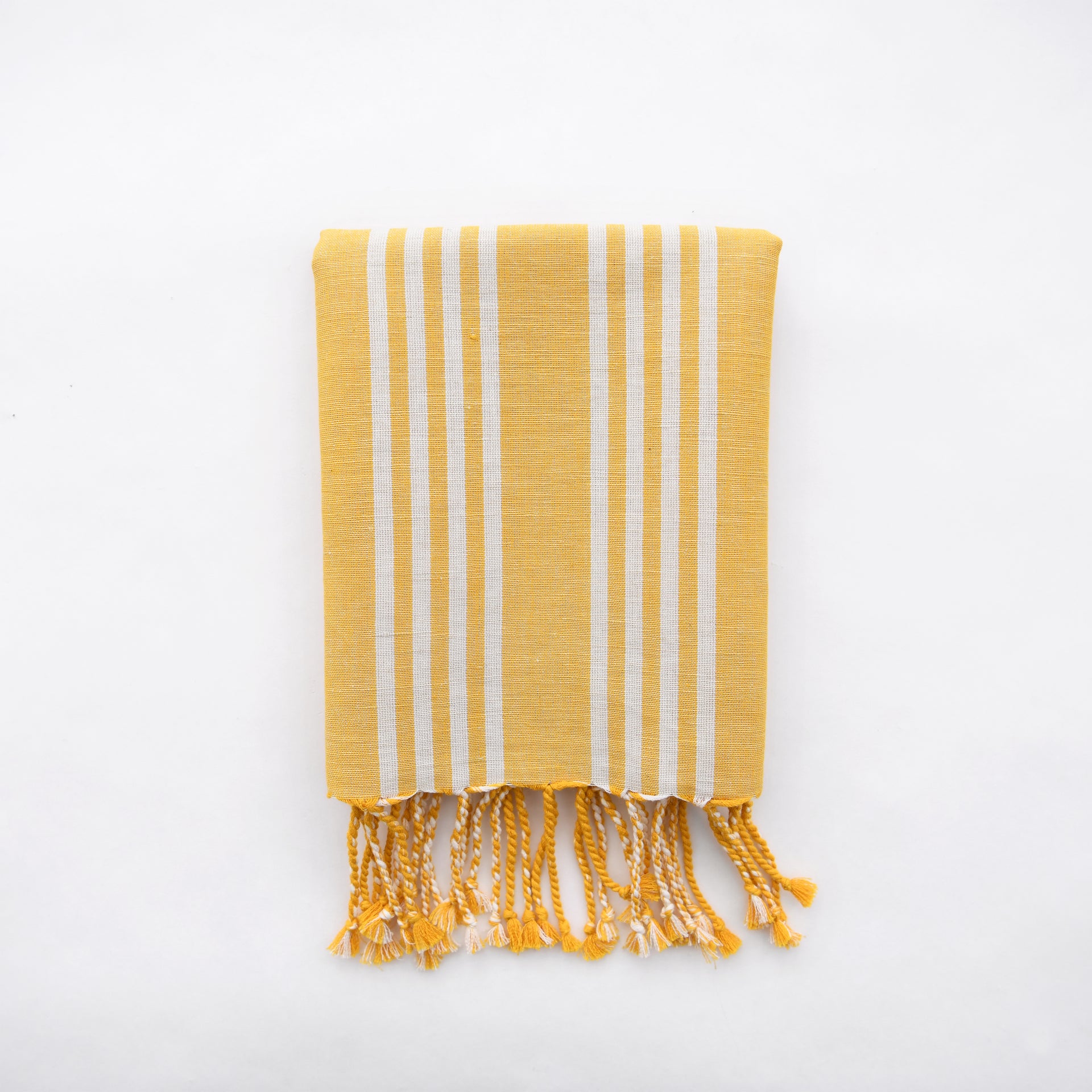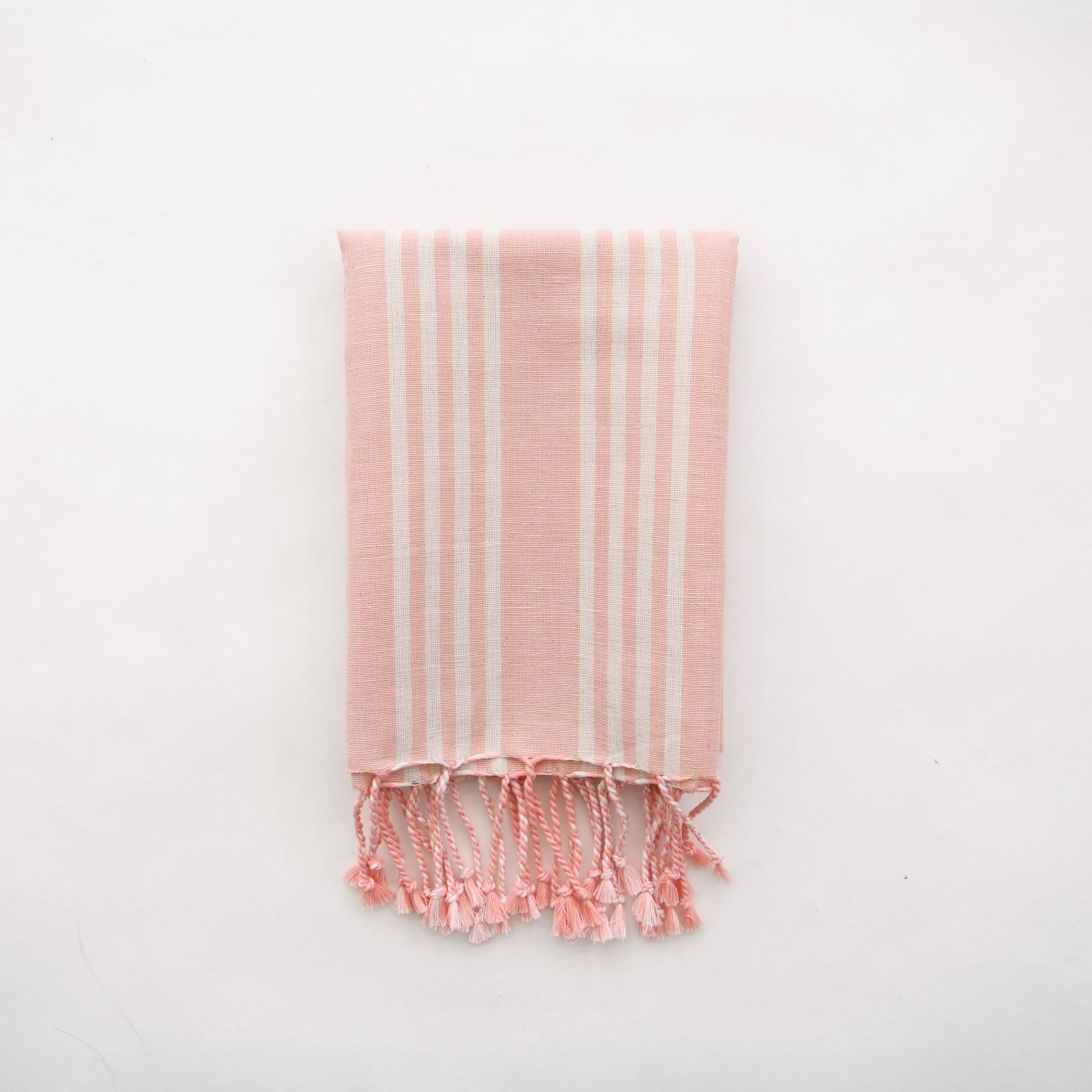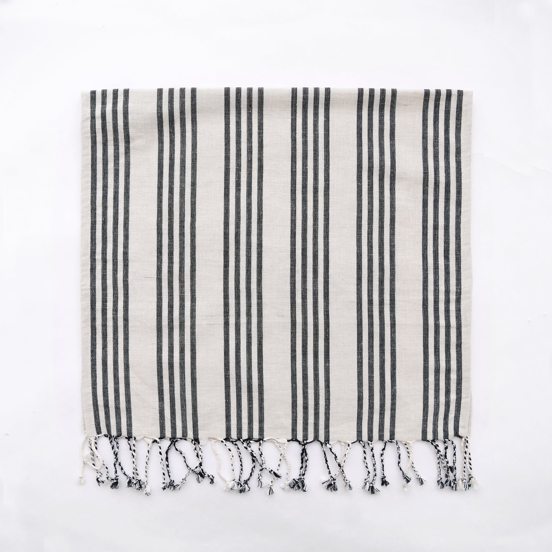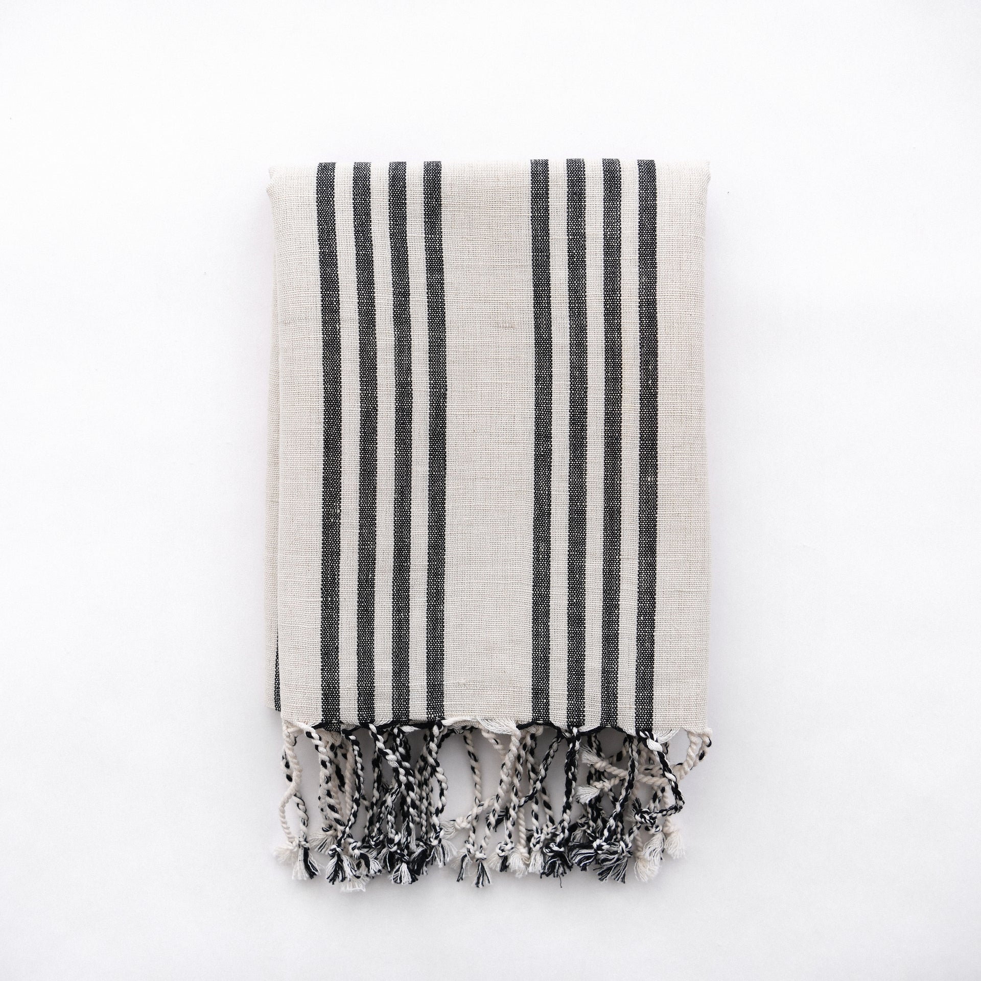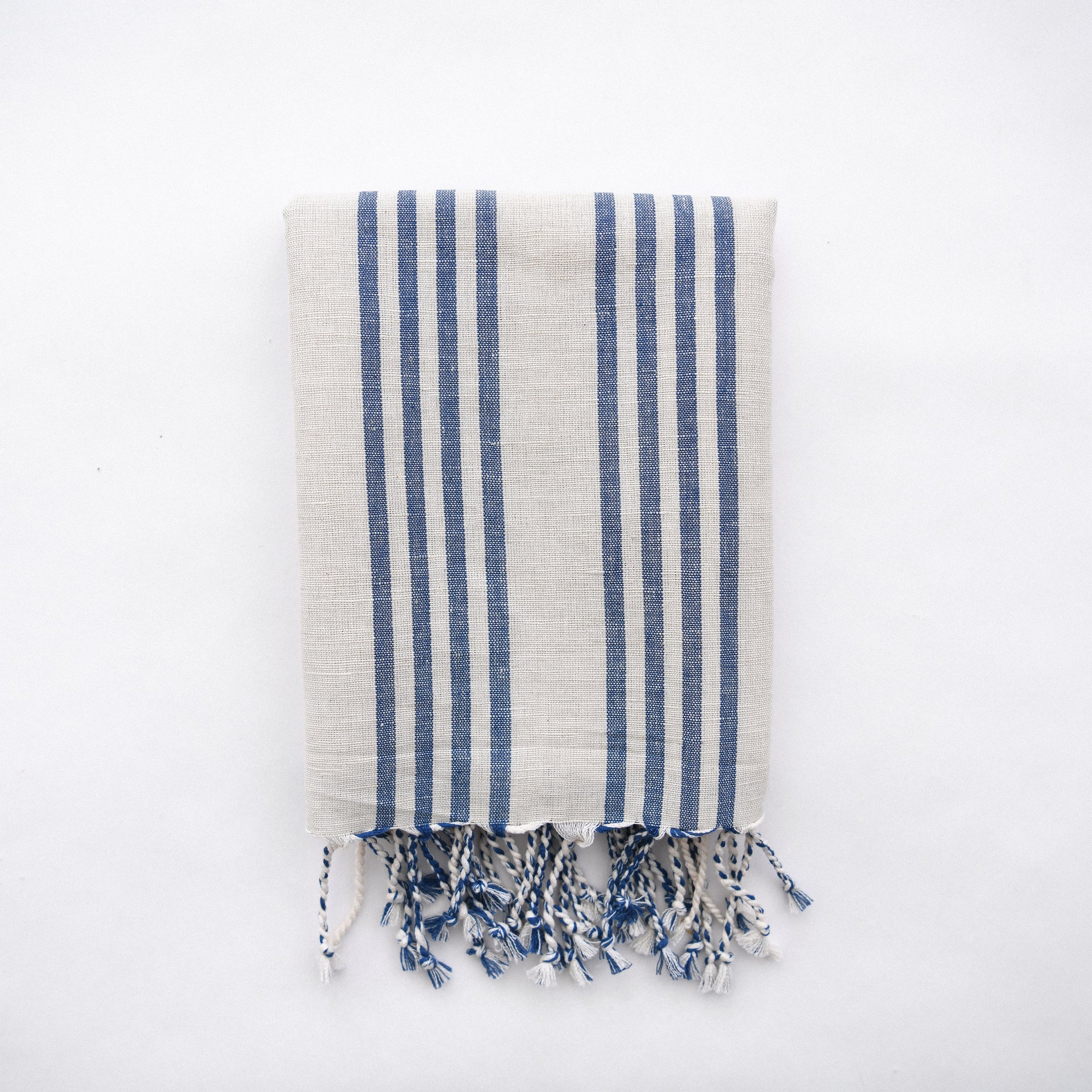 Our Linen / Cotton Small Ticking Hand Towel is woven exclusively for us. Hand-spun yarn lends itself to a luxe, vintage feel. The linen / cotton weave is very absorbent and gets softer every time you wash it.