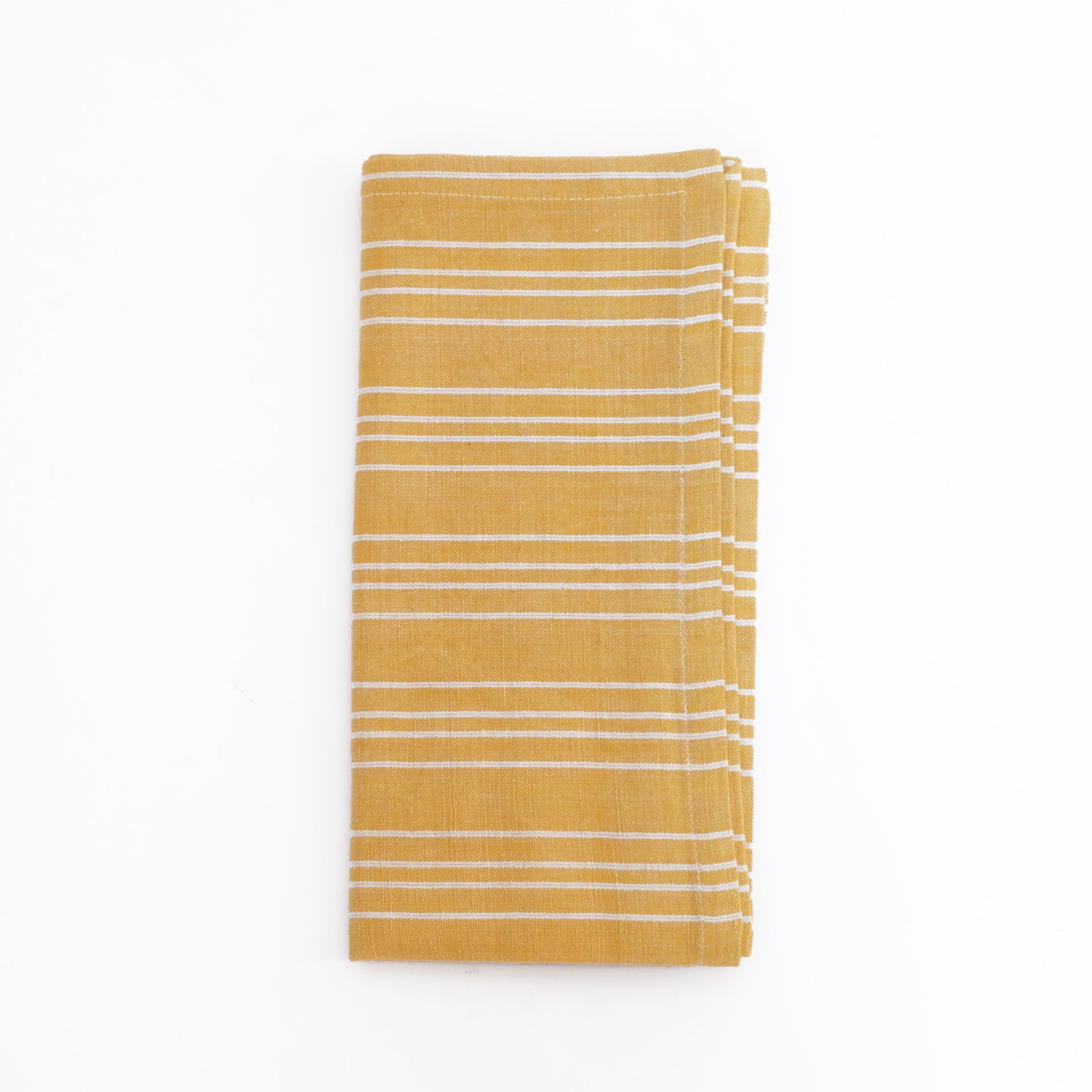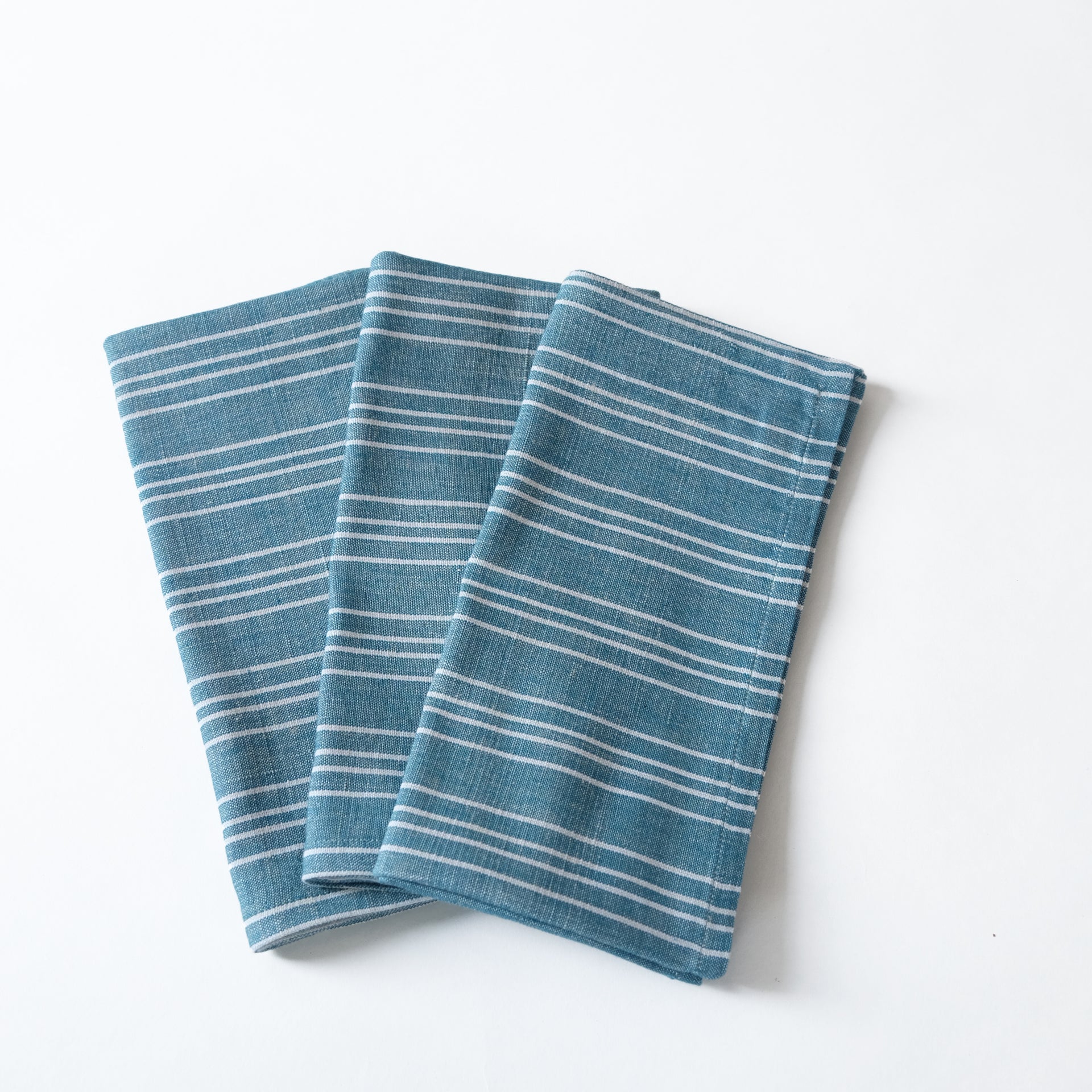 Our Linen / Cotton Small Ticking napkins are woven exclusively for us. Hand-spun yarn lends itself to a luxe, vintage feel. The linen / cotton weave is very absorbent and gets softer every time you wash it.