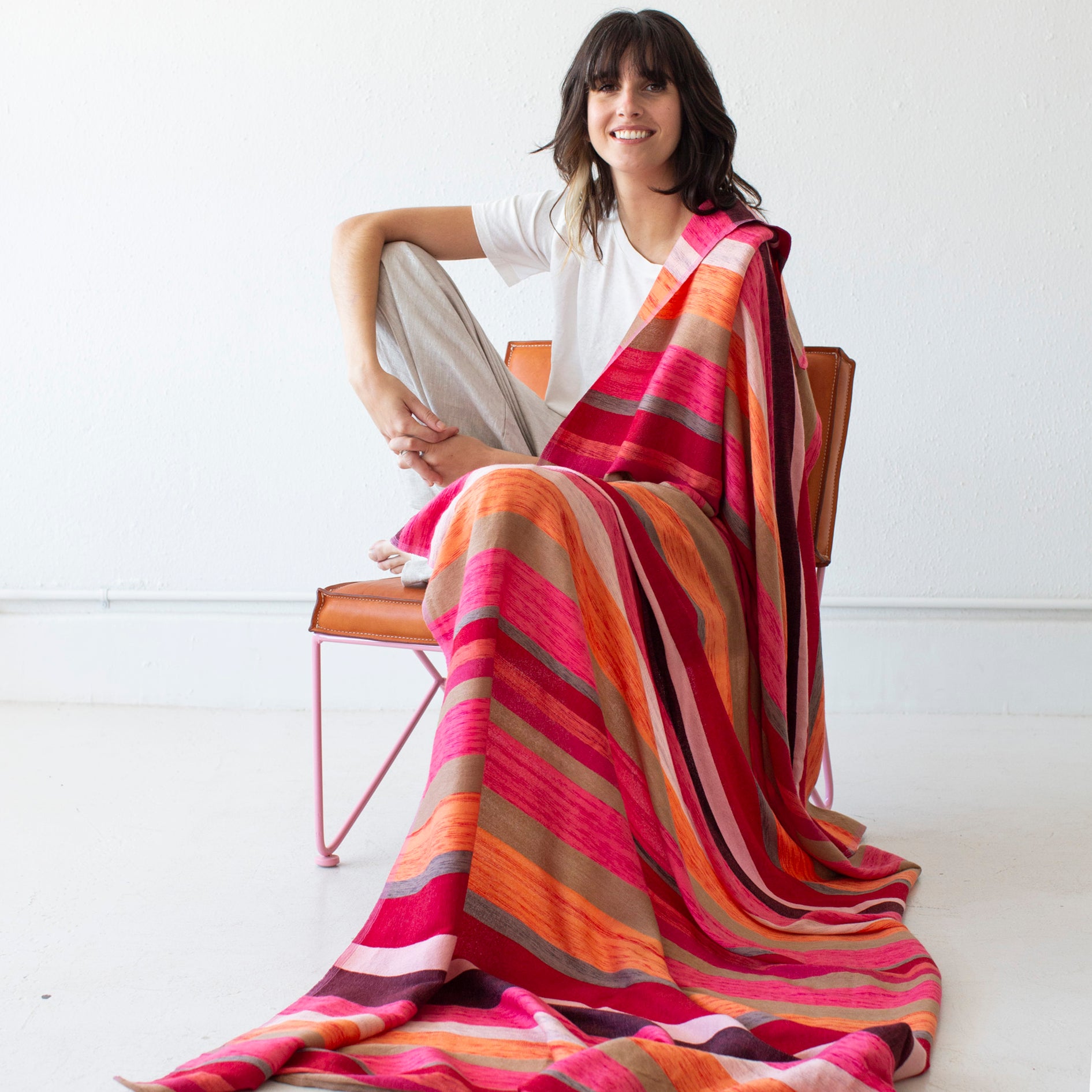 Khadi has long been known for its ability to keep the wearer warm in the winter and cool in the summer. The inherent variances of the fabric reflect the beauty of the involved, handwoven Khadi process. It’s lightweight and super soft and works great on a bed, draped over a chair, as a travel blanket or worn as a wrap.