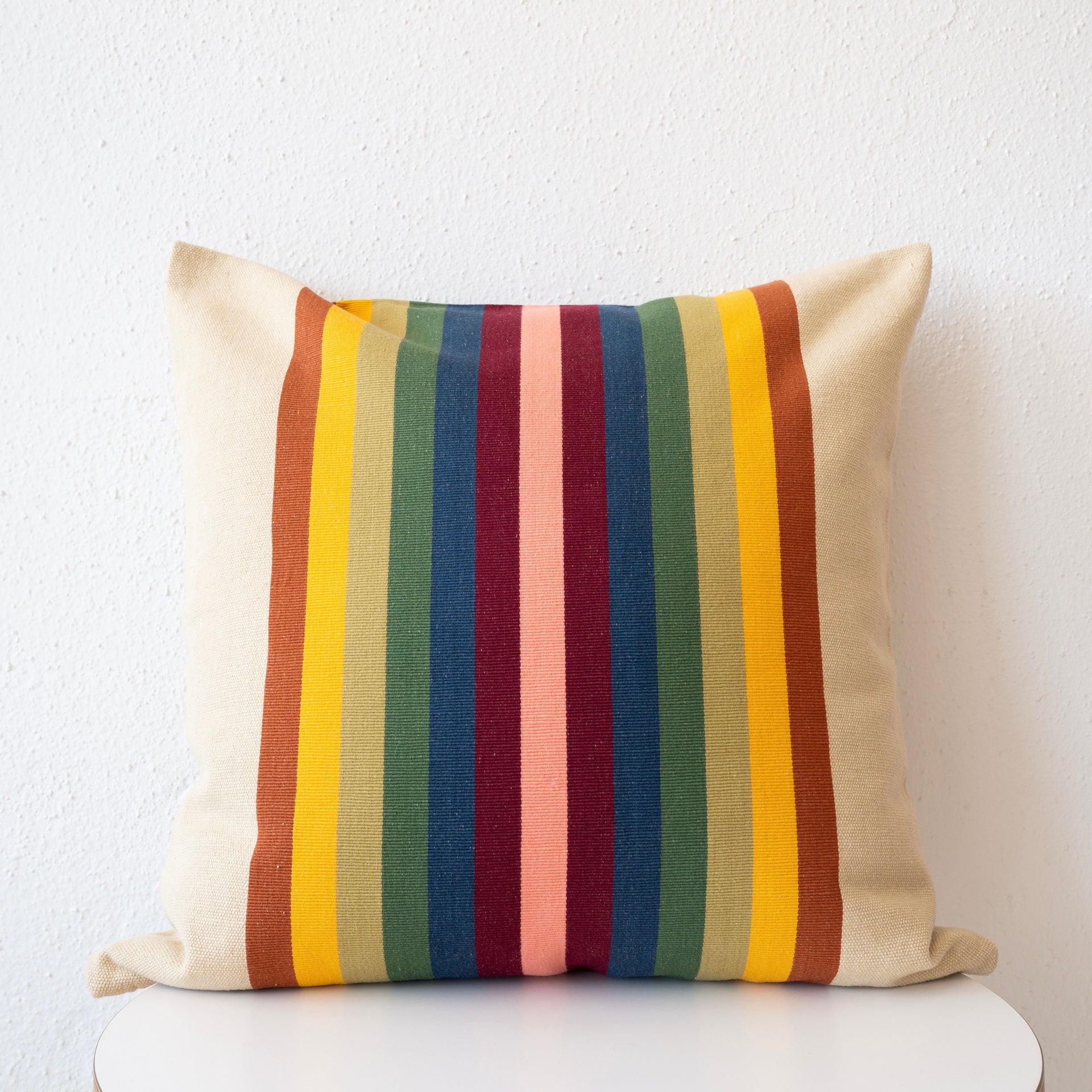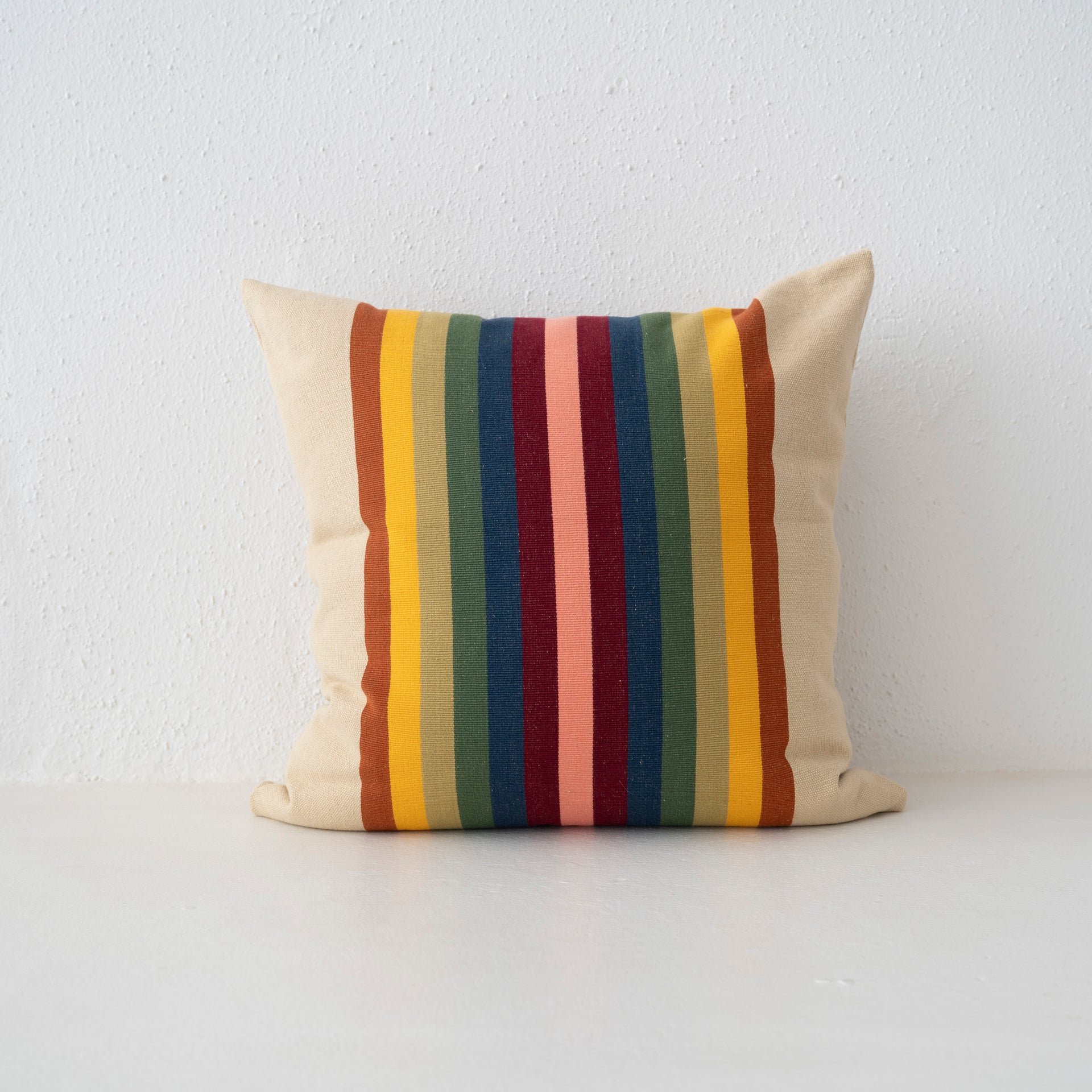 Garza Marfa Cotton Canvas 20" x 20" Pillow: Earth Spectrum Stripe