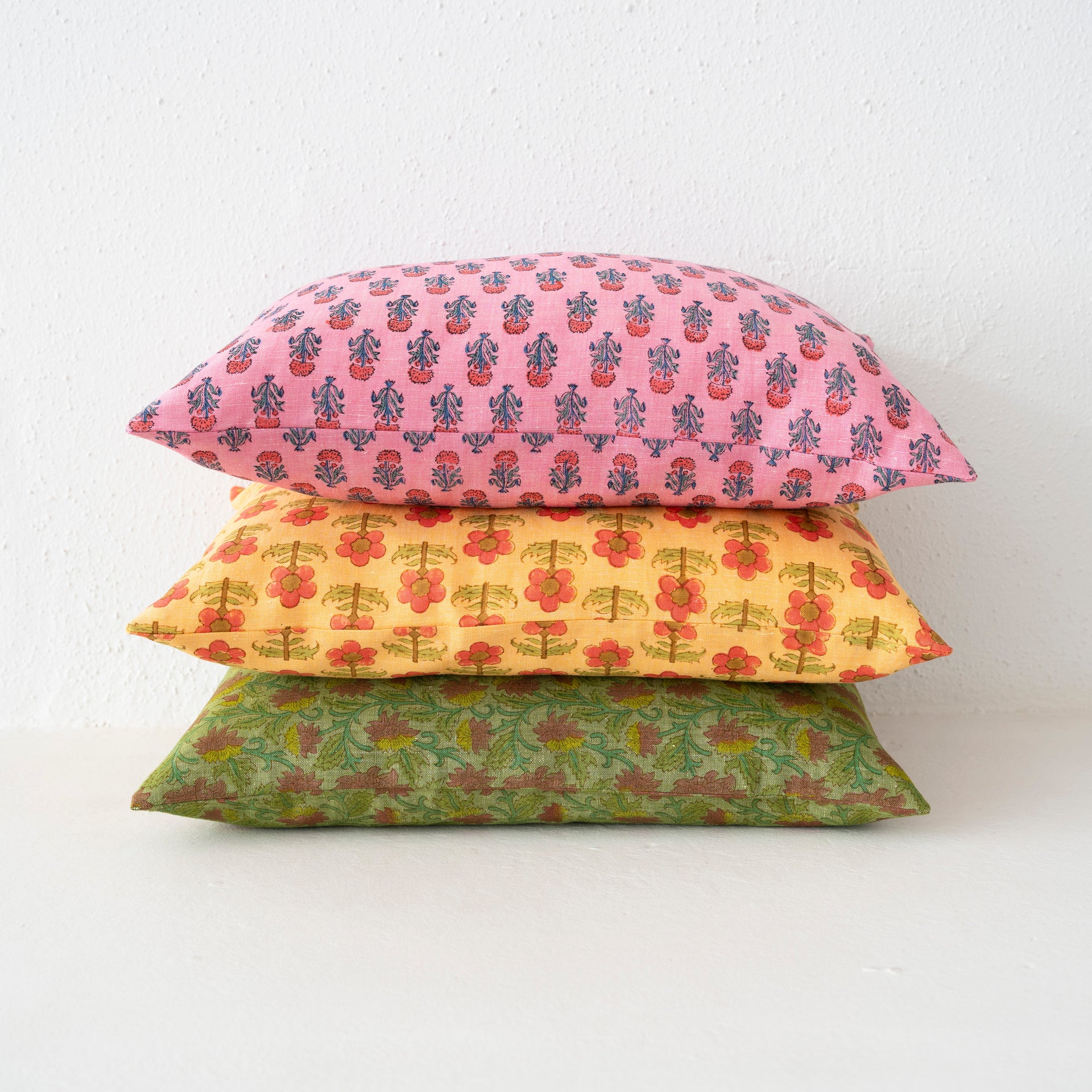 Garza Marfa Linen + Cotton Block Printed Pillows: 14" x 20"