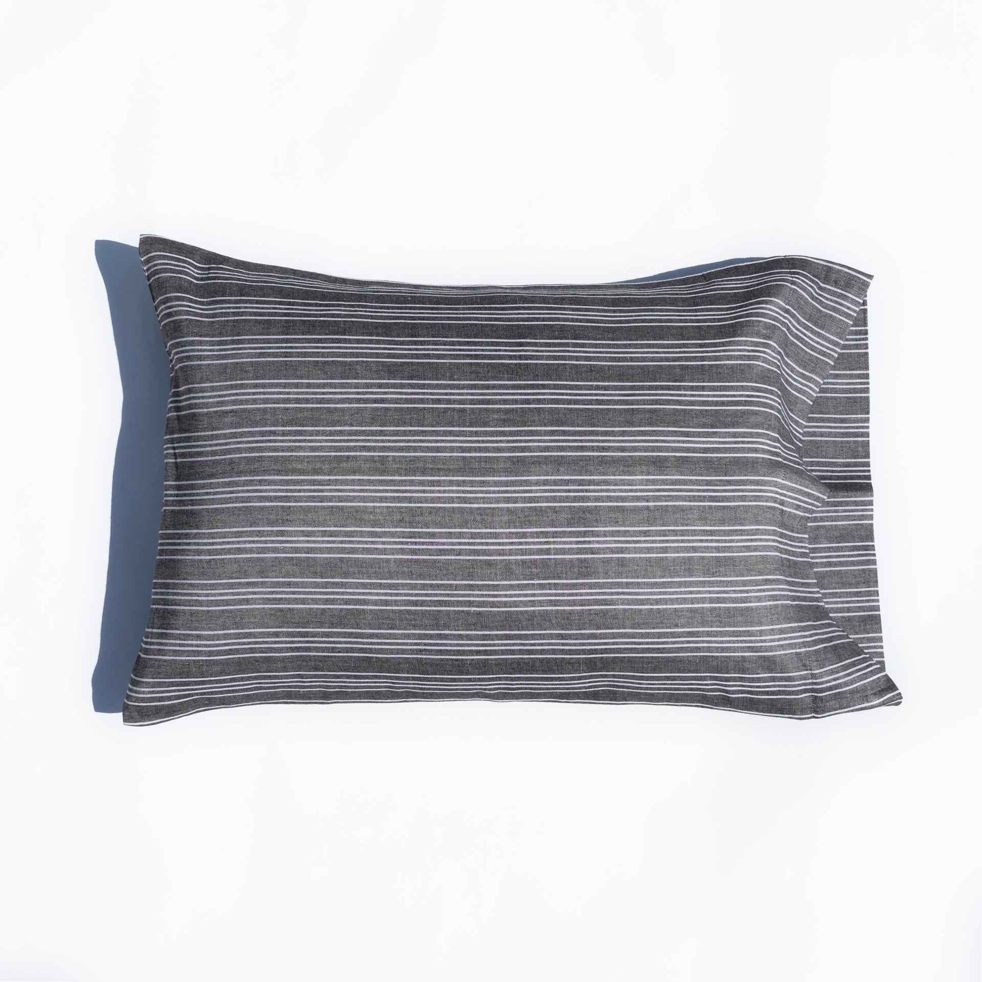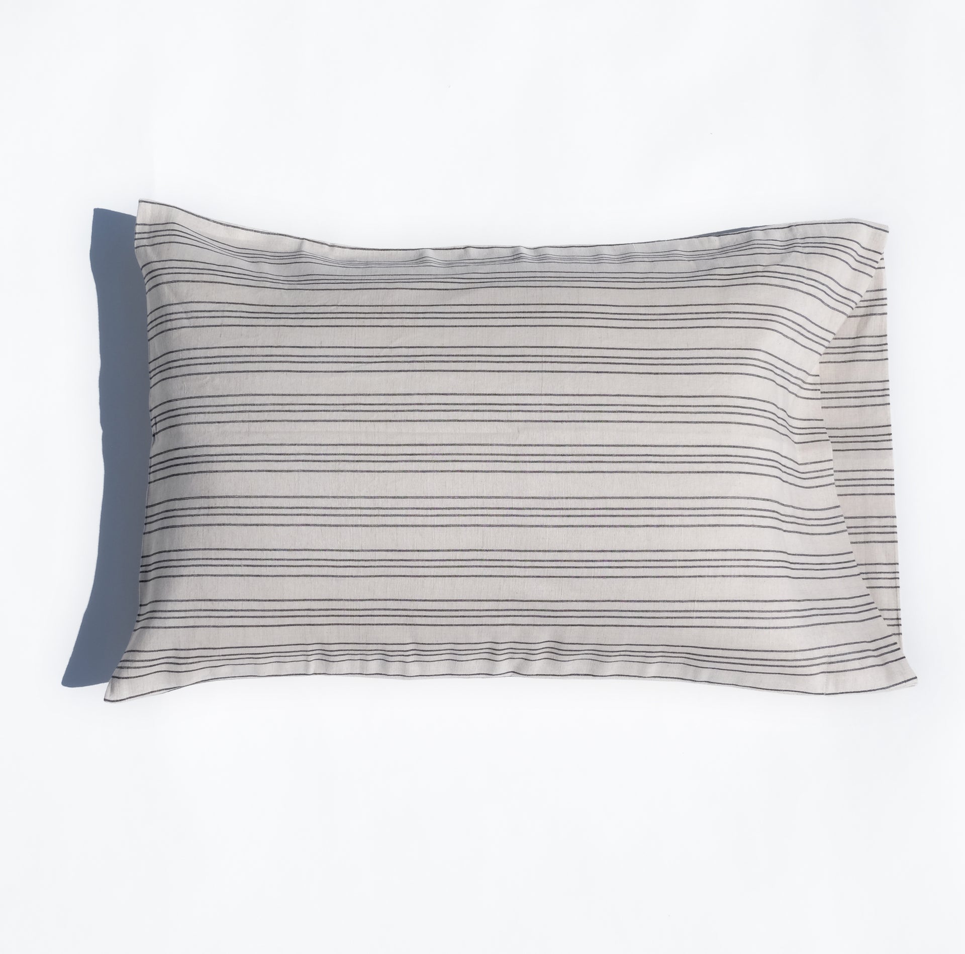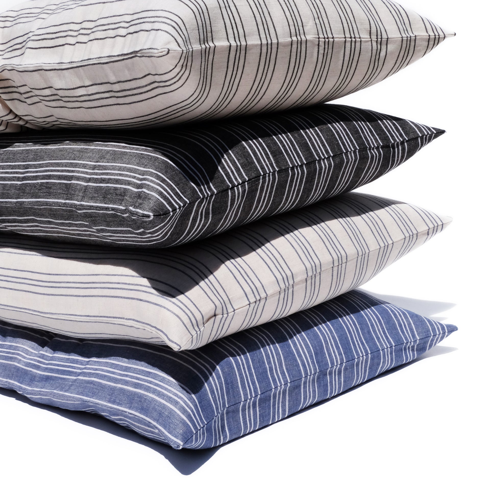 Garza Marfa Linen + Cotton 20 X 31" Pillowcase: Black-Ivory, Ivory-Black, Blue-Ivory, Ivory-Blue Striped Ticking