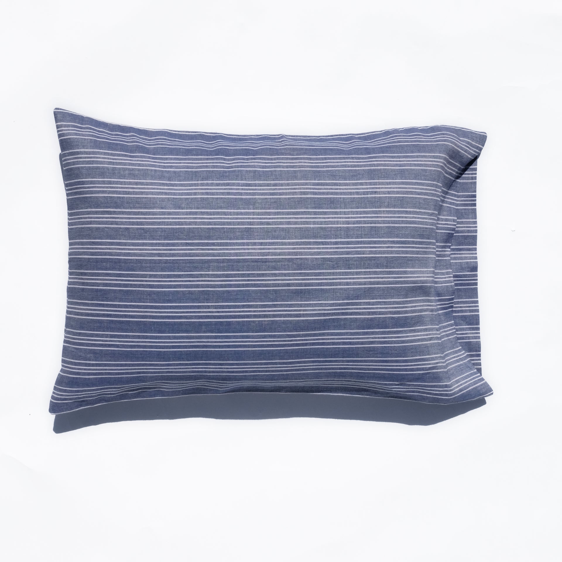 Our Linen / Cotton Teal Small Ticking Pillowcases are woven exclusively for us. Hand-spun yarn lends itself to a luxe, vintage feel.