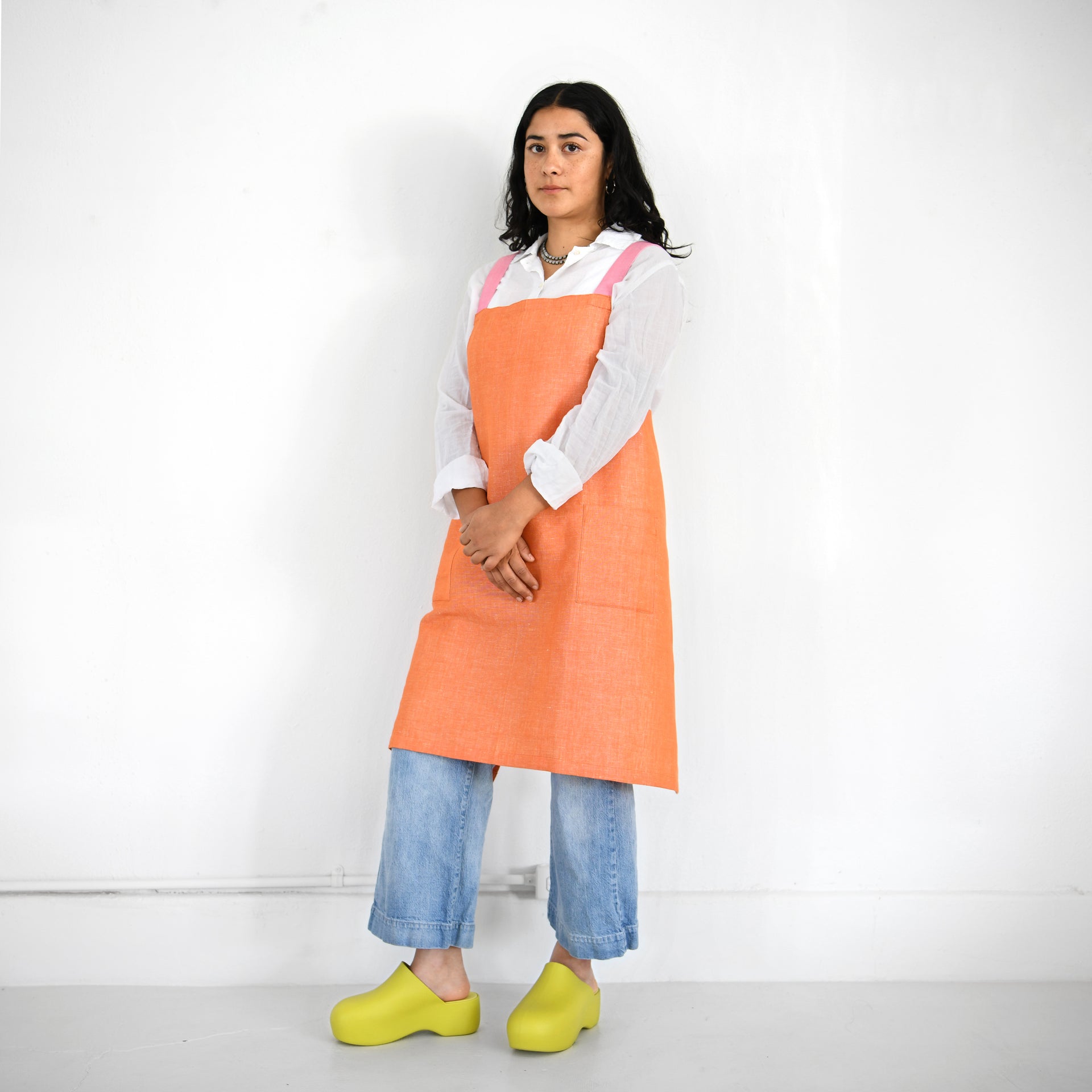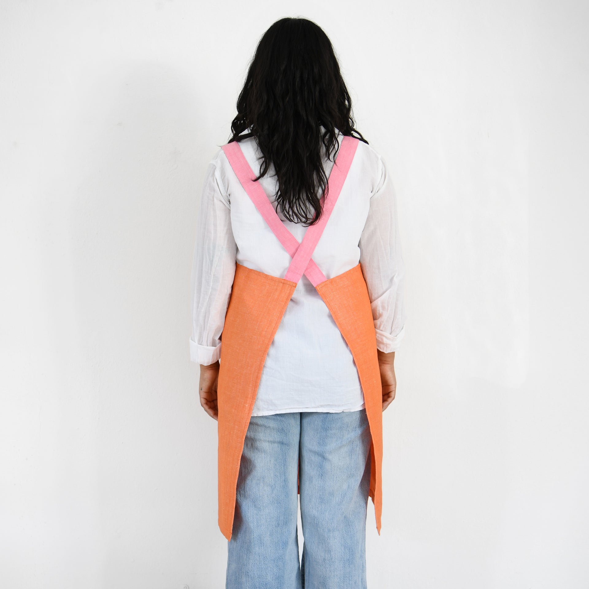Garza Marfa Linen / Cotton Crossback Apron - Orange + Rosa