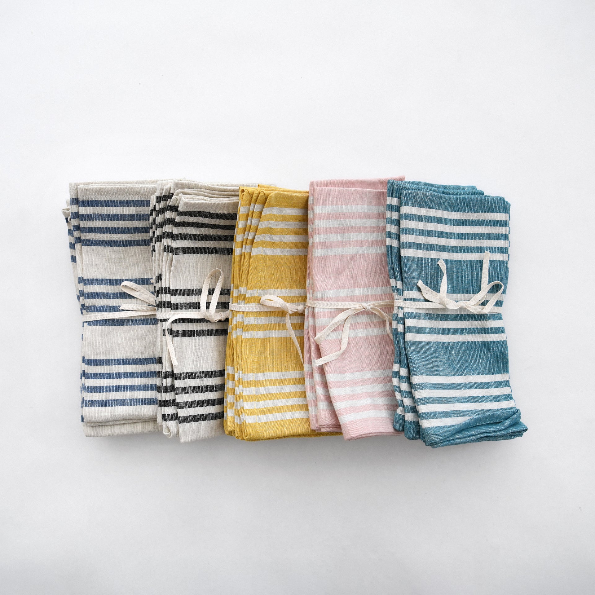 Our Linen Cotton Ticking napkins are woven exclusively for us. Hand-spun yarn lends itself to a luxe, vintage feel. The linen / cotton weave is very absorbent and gets softer every time you wash it.