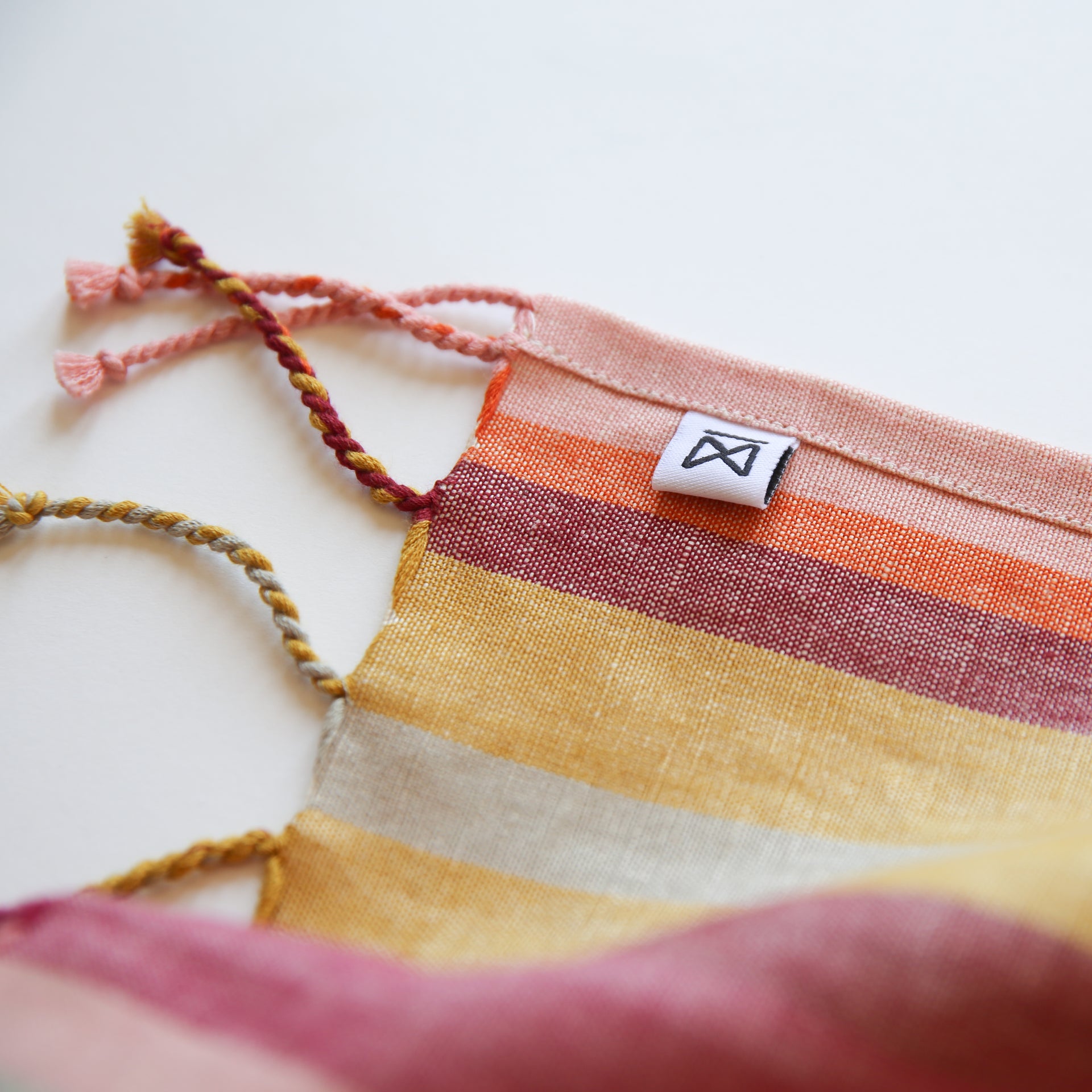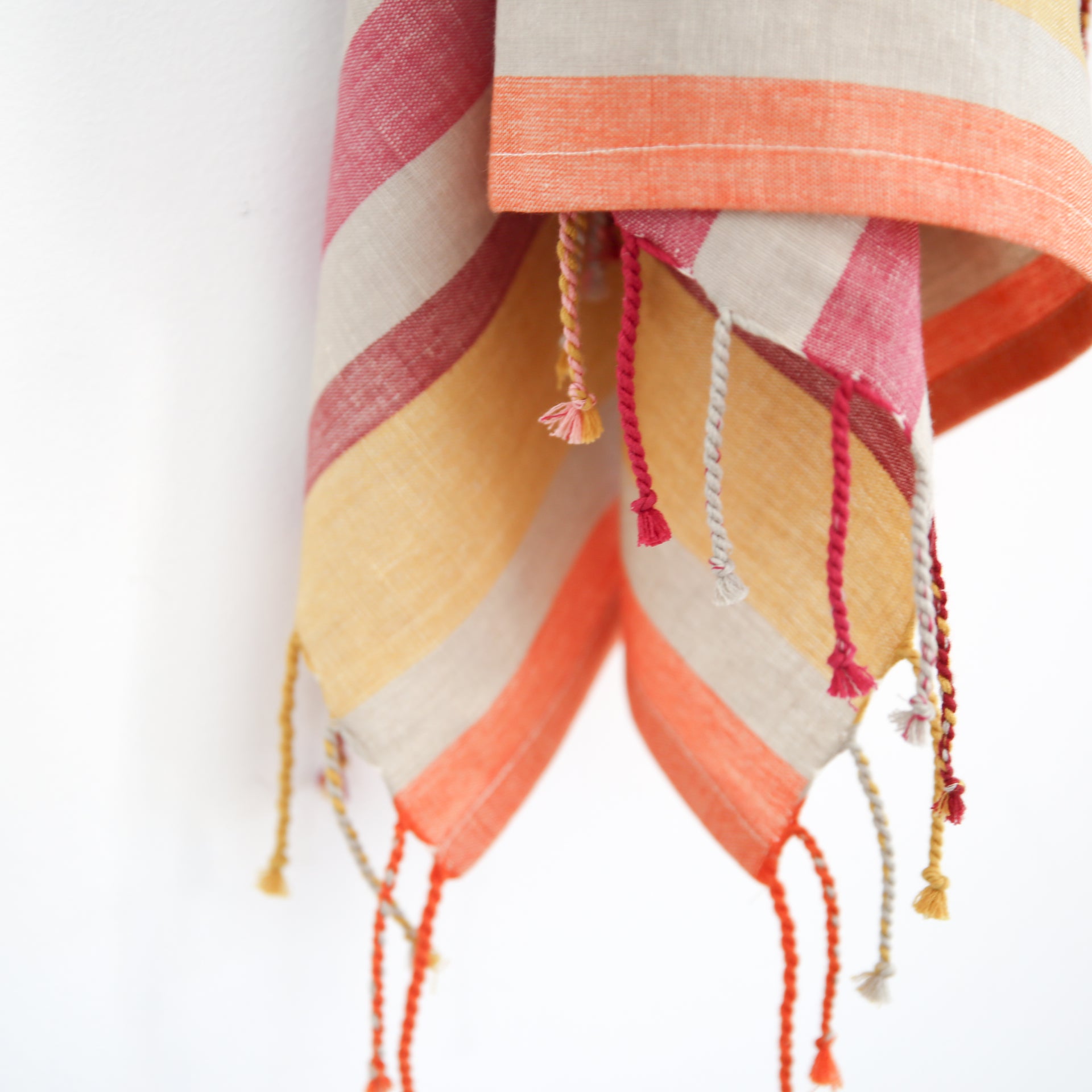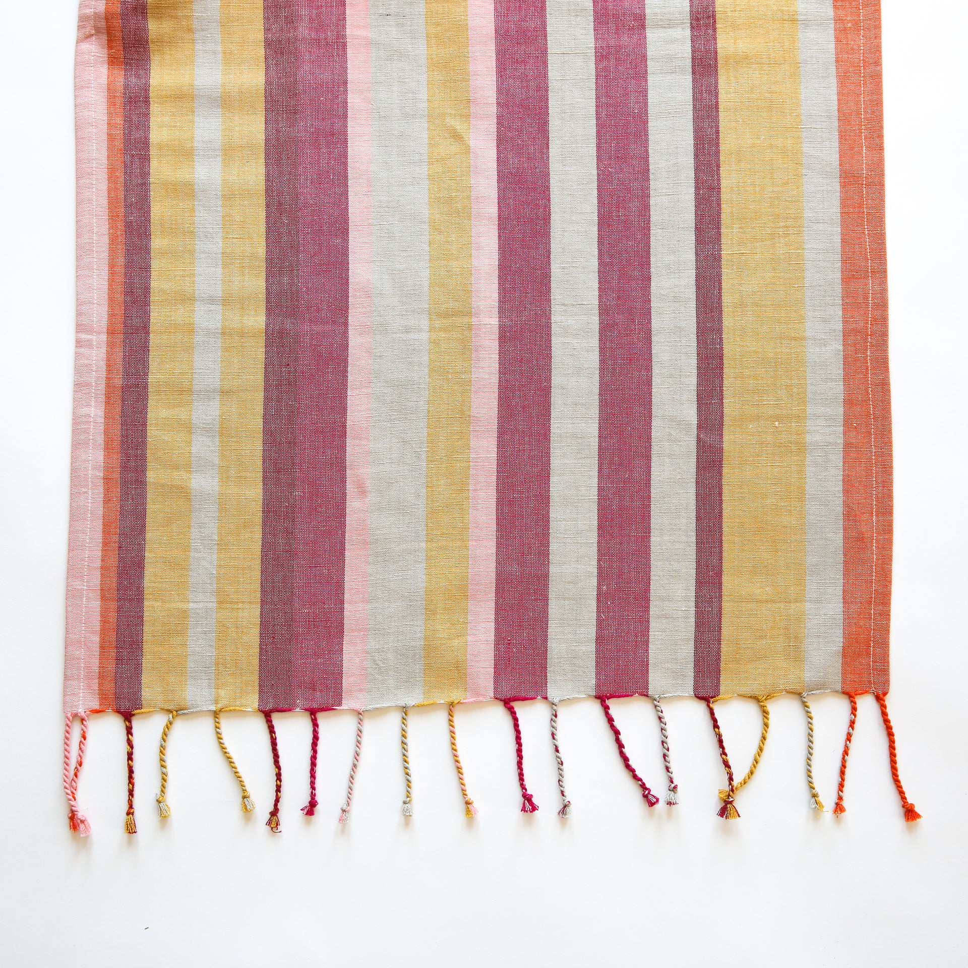 Our Linen / Cotton Burgundy Stripe Hand Towel is woven exclusively for us. Hand-spun yarn lends itself to a luxe, vintage feel. The linen / cotton weave is very absorbent and gets softer every time you wash it.