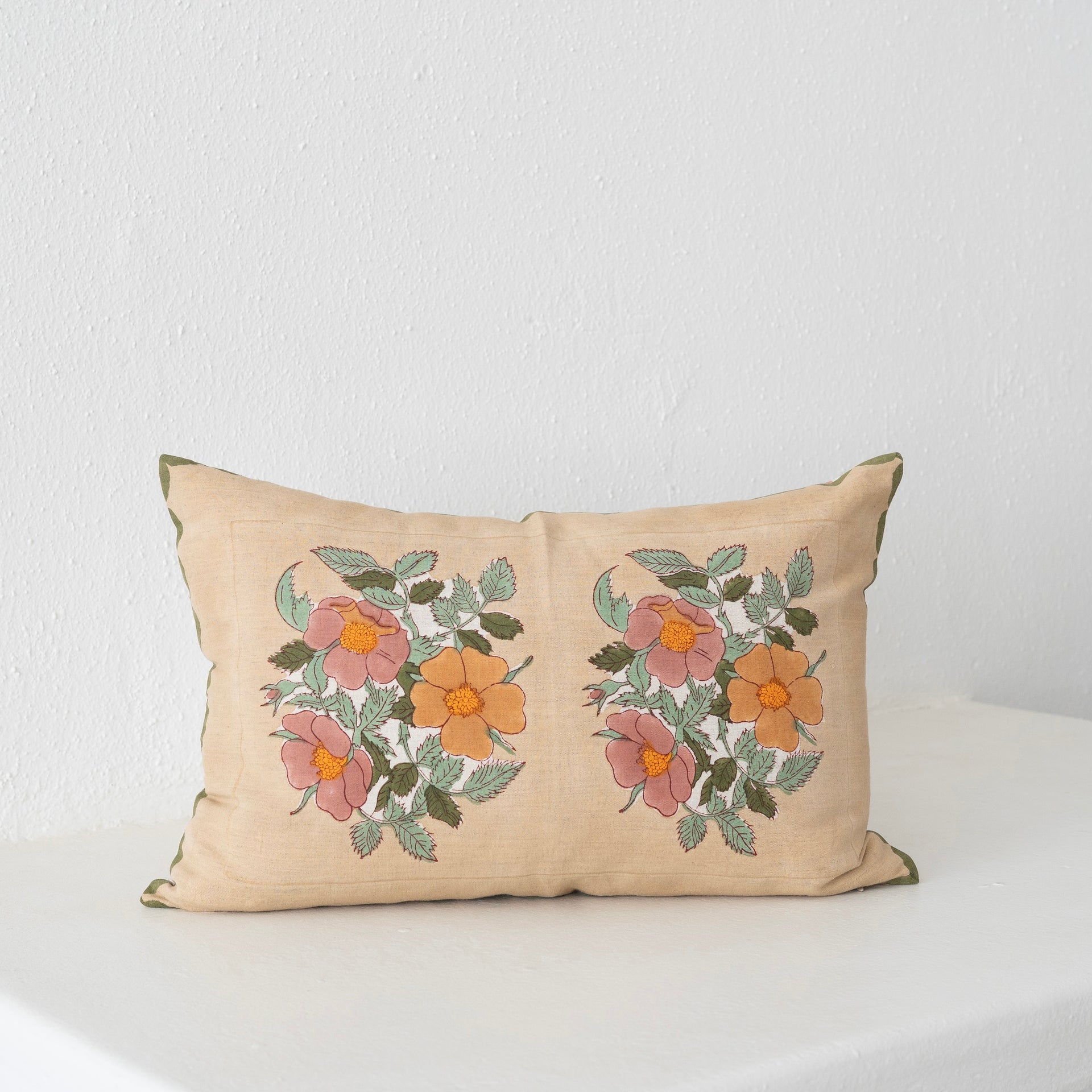 Soil to Studio DIA - 14" x 20" Hand Block-Printed Linen Pillow - Café au Lait