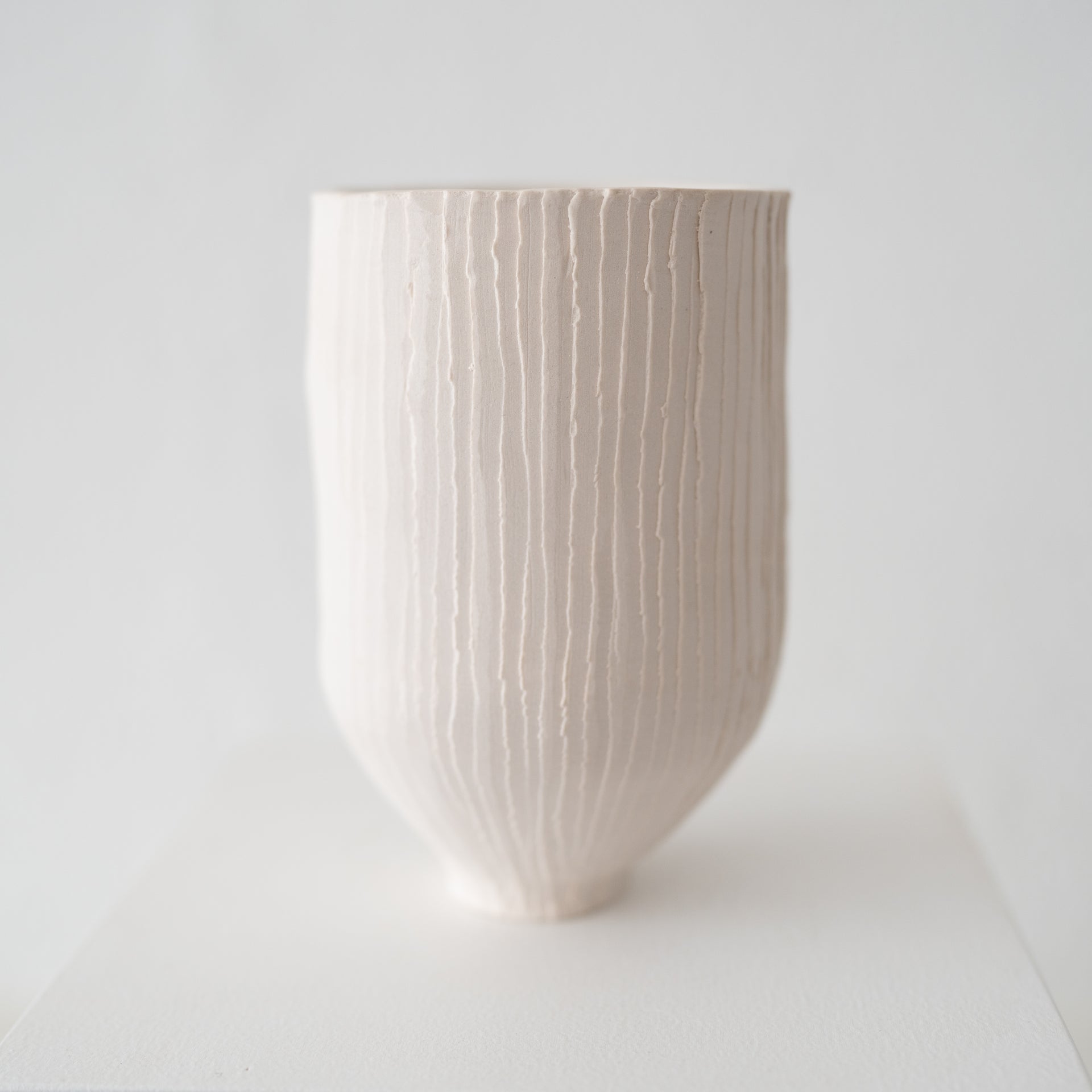 Cait Reas Med Textured Bud Footed Vase- Cream