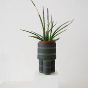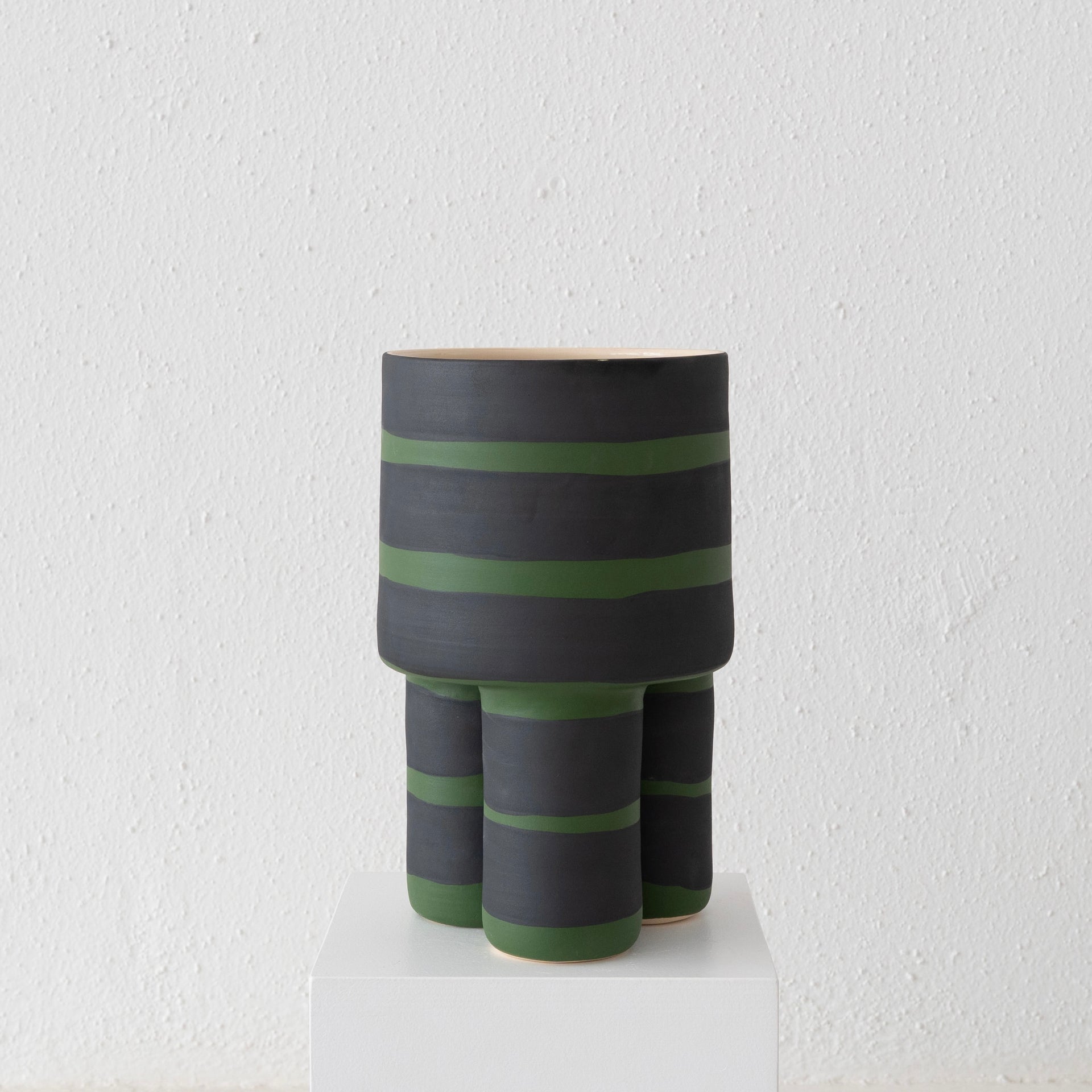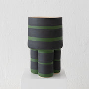 Hand-thrown, stoneware with hand glazed pattern. Matte finish.