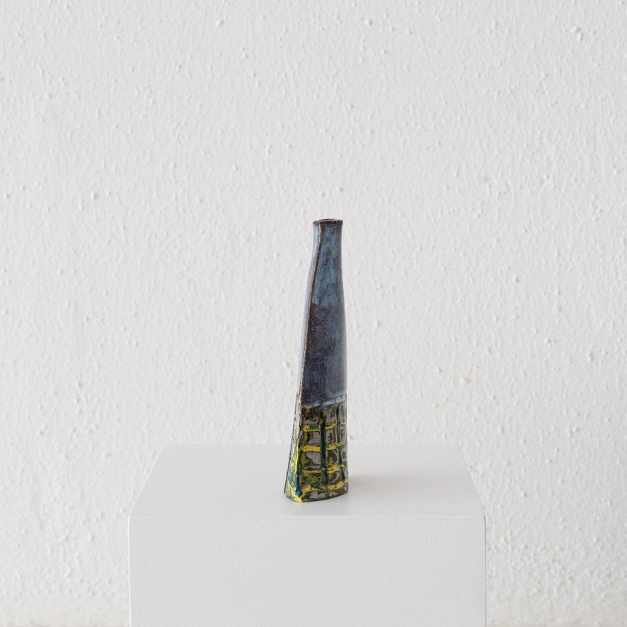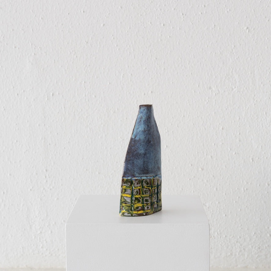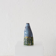 Jo Ann Williams Flat Textured Bottle / Vase: Blue, Green + Yellow