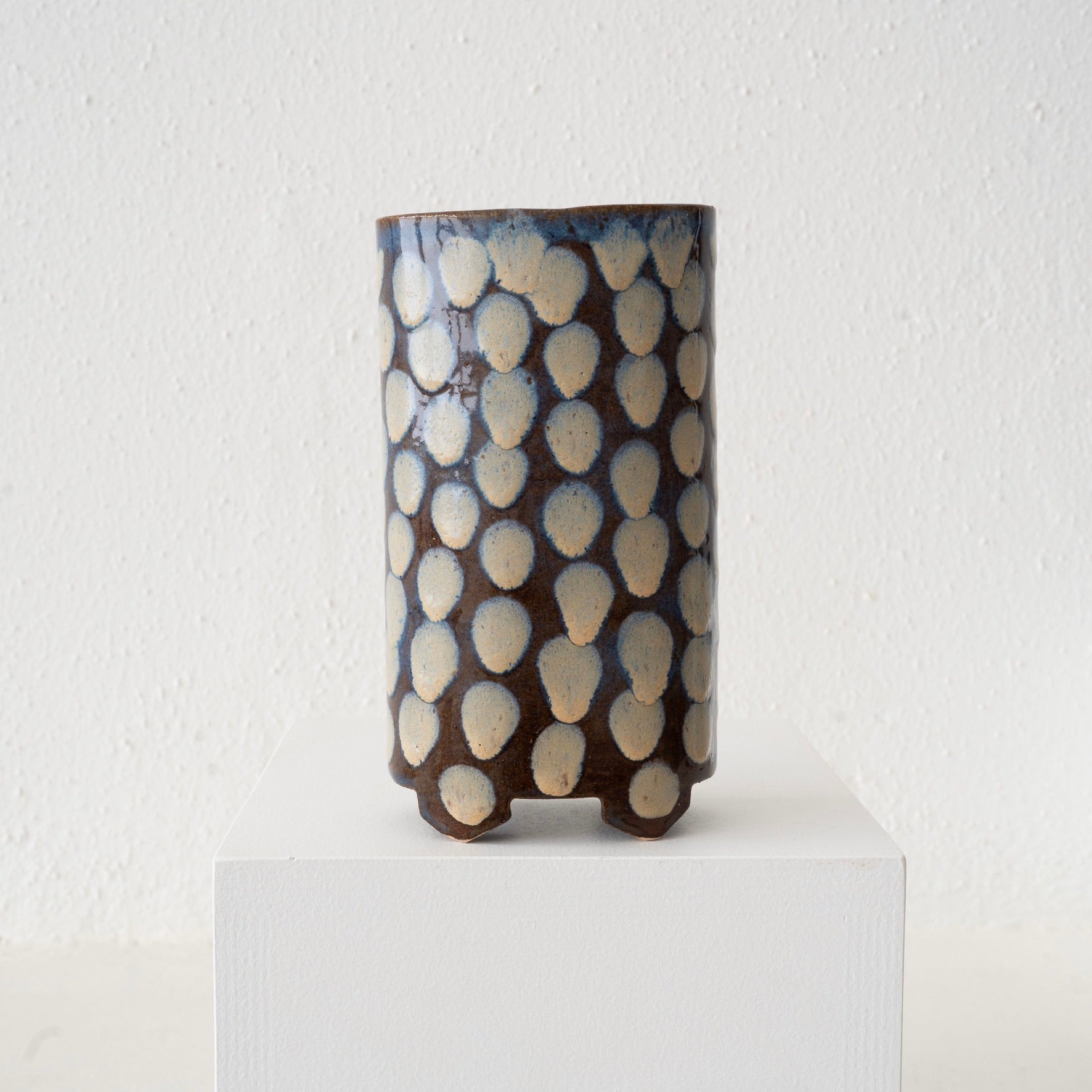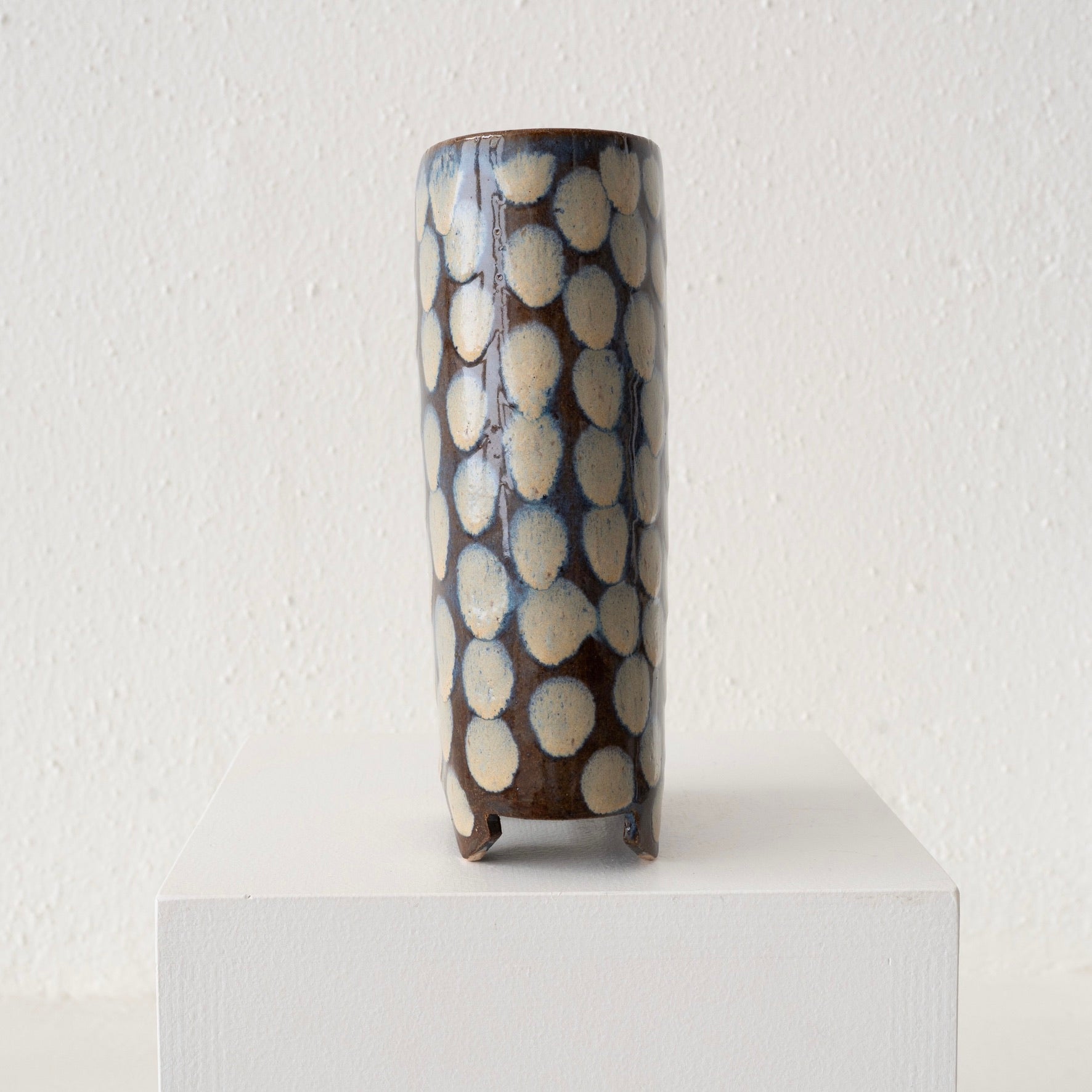Jo Ann Williams Footed Polka Dot Vase - White and Blue Drip