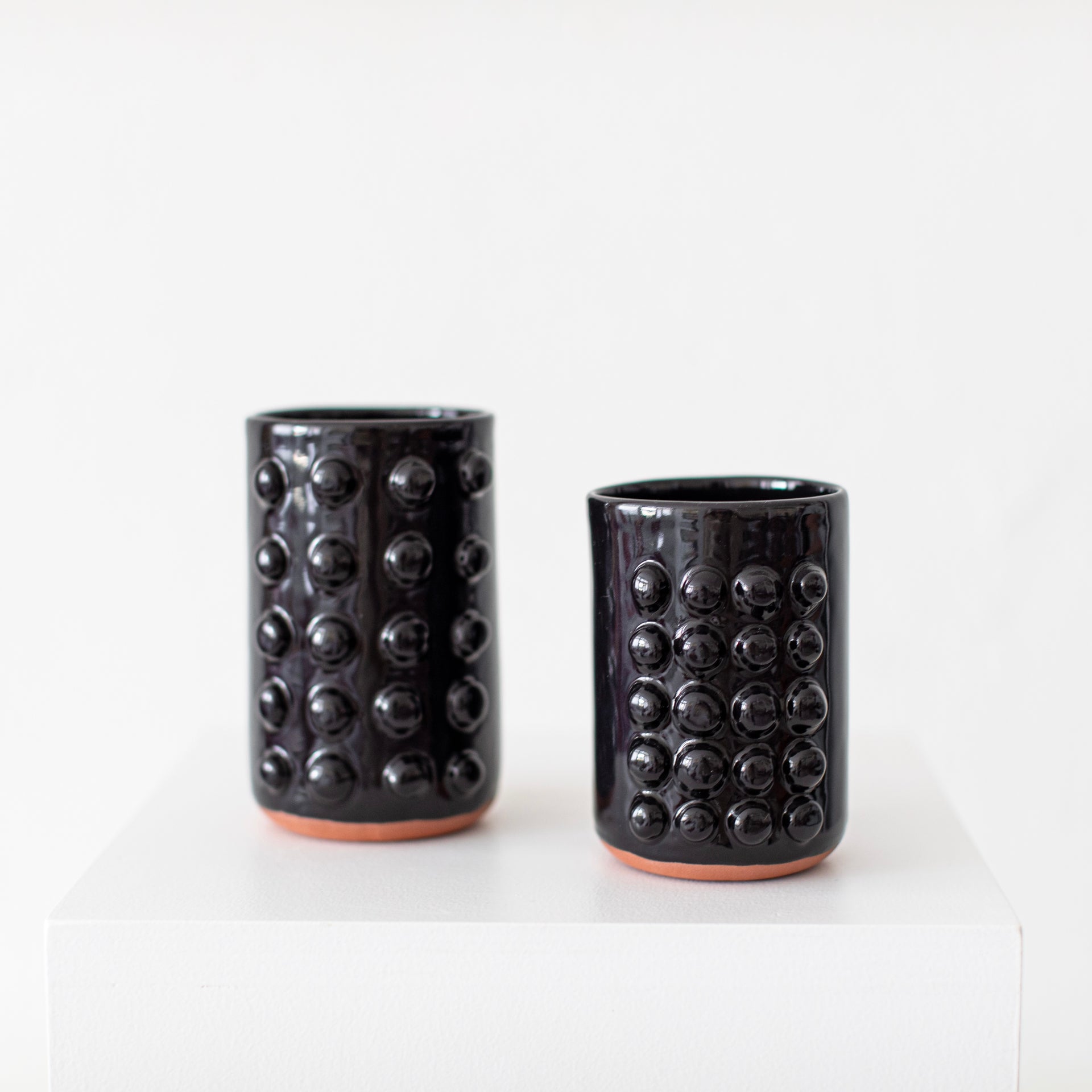 Dina Perlasca Shiny Black Terracotta Tumbler with 20 Knobs.