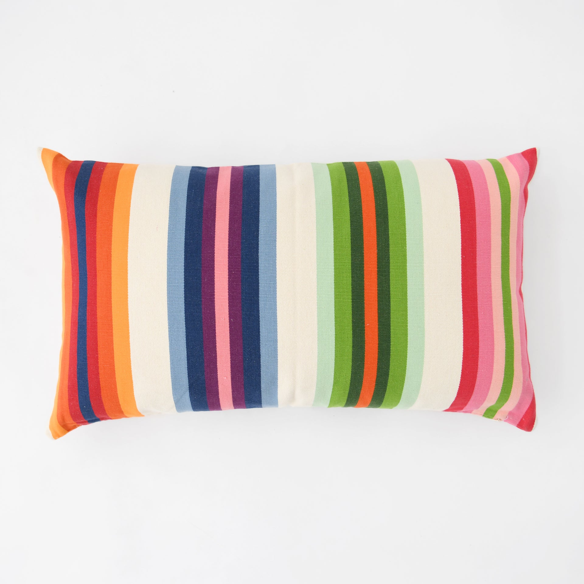 Garza Marfa Cotton Canvas 16" x 26" Bolster: Rainbow Stripe