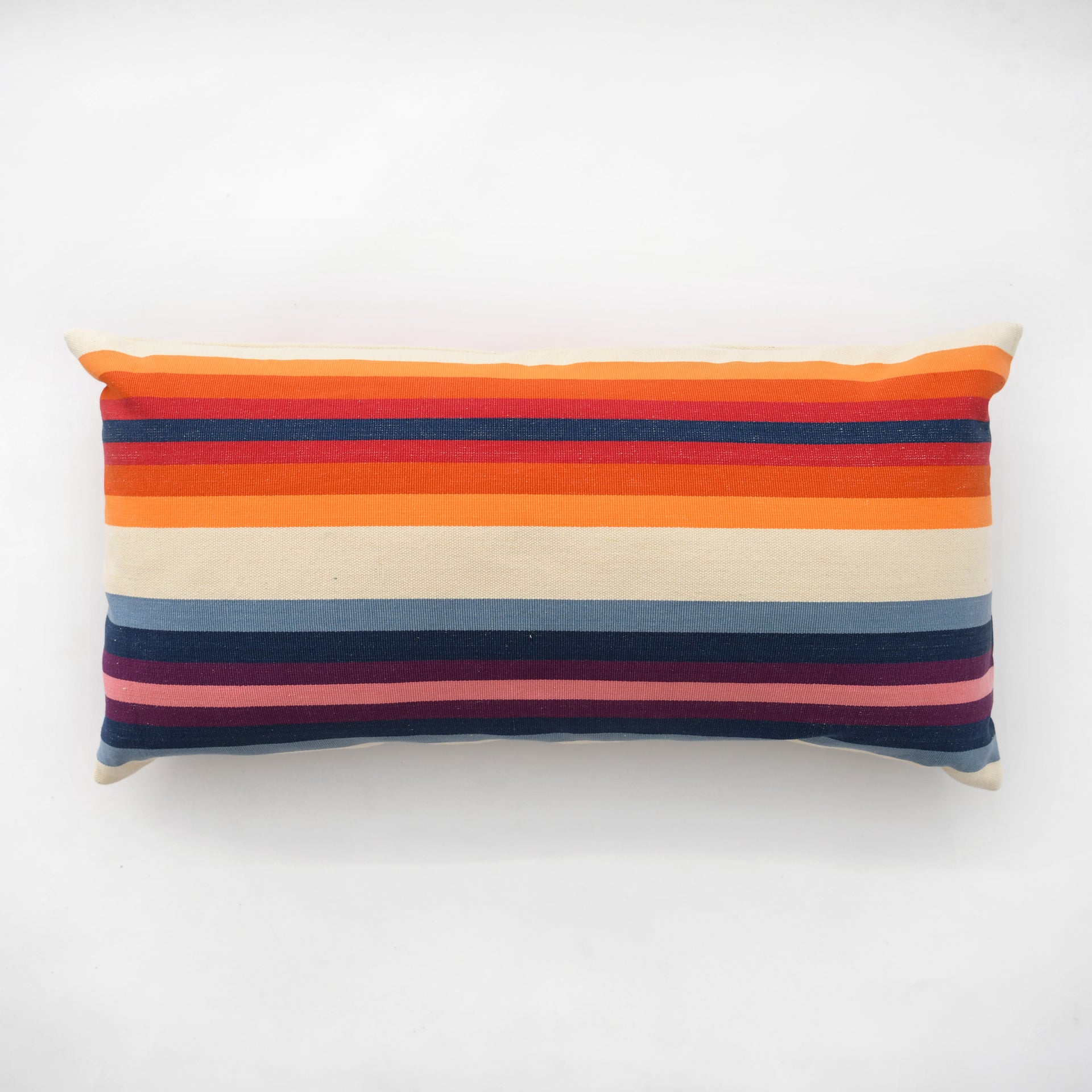 Garza Marfa Cotton Canvas 14" x 28" Bolster Pillow: Rainbow Stripe