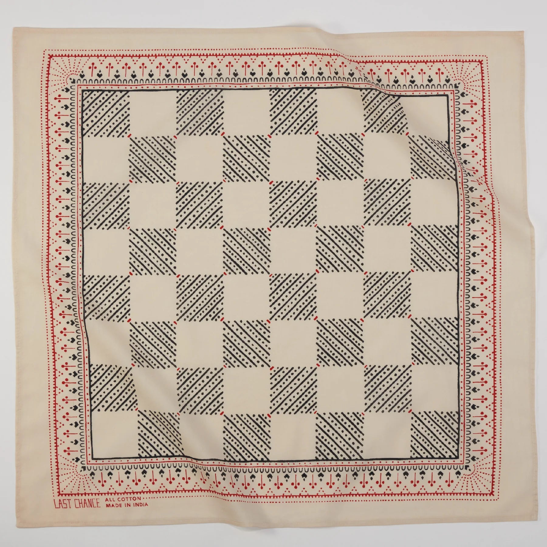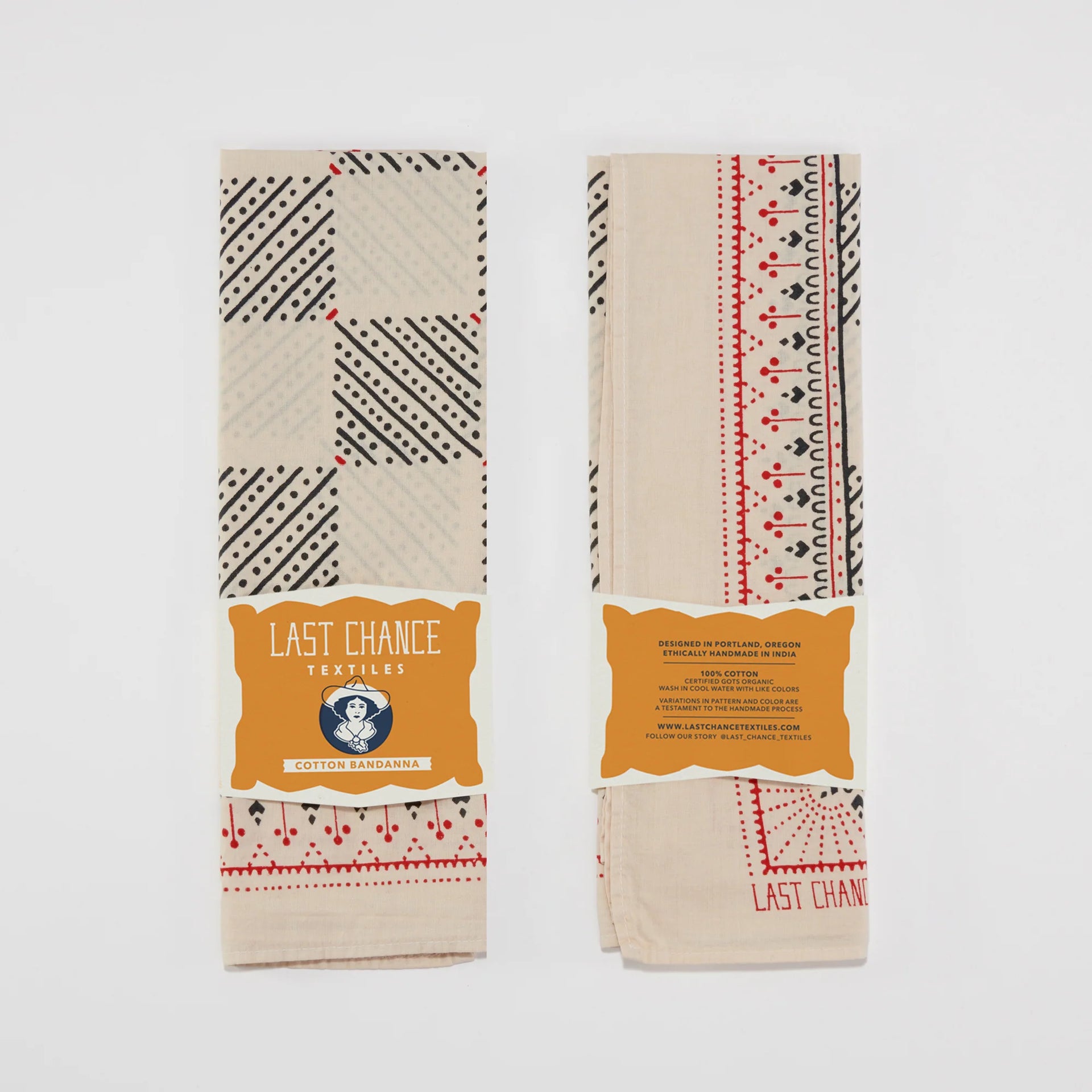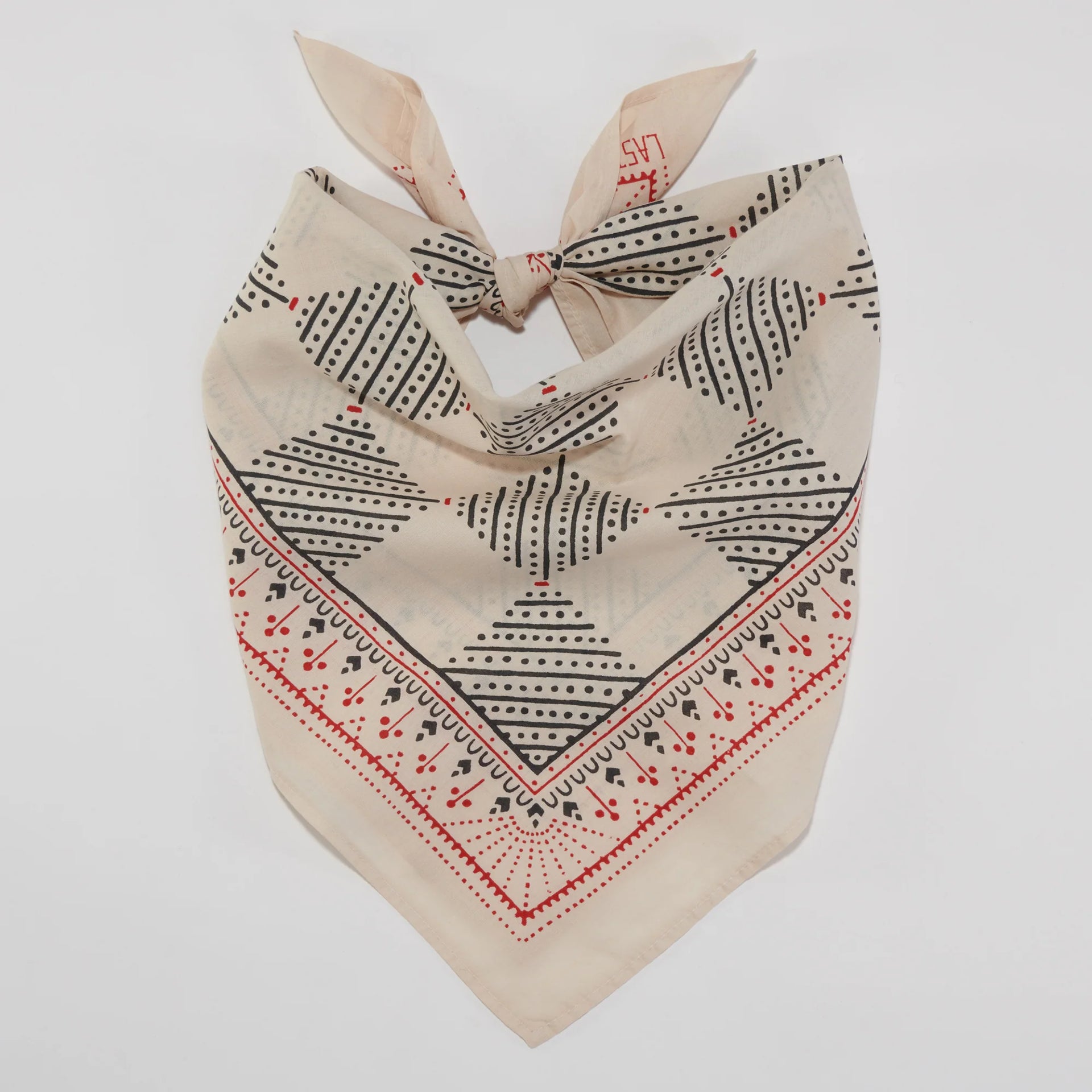 Every bandana features an original hand-drawn pattern by our founder Lindsey Fout. Variation in dye color, print, and sewing is testament to the handmade process.