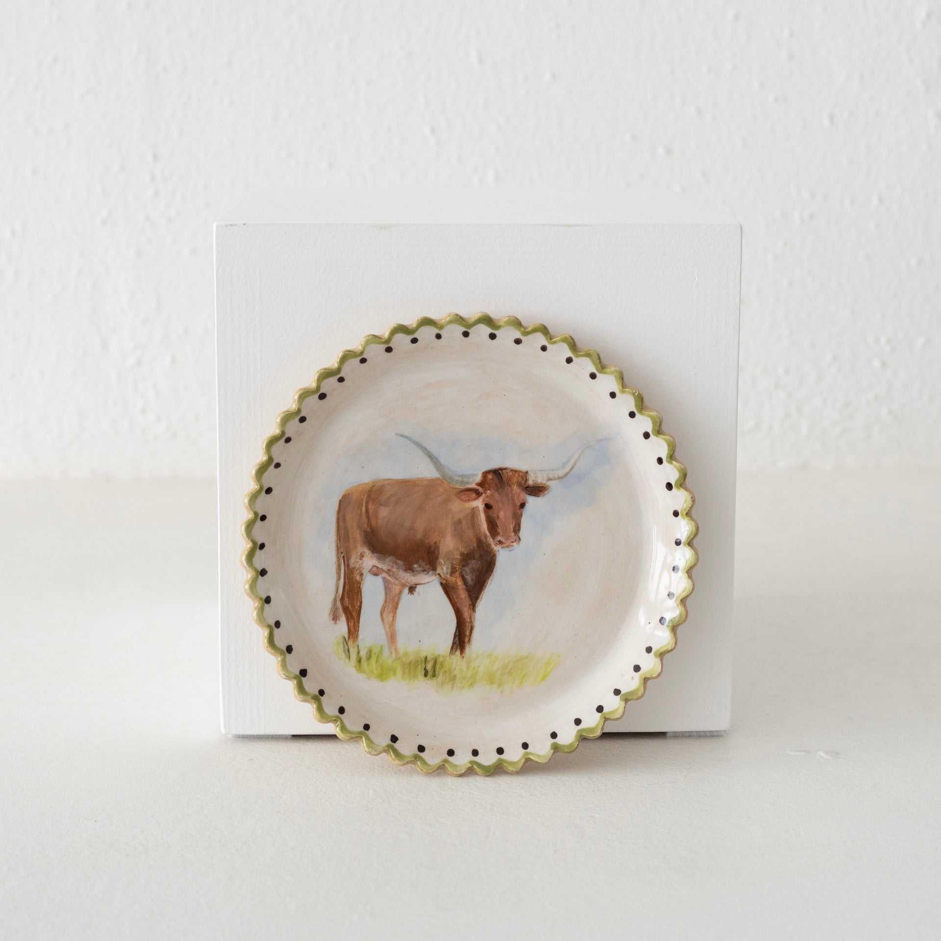 Each plate is hand-formed and hand-painted by Mary. These plates may vary slightly in color, shape and pattern due to the handmade processes.