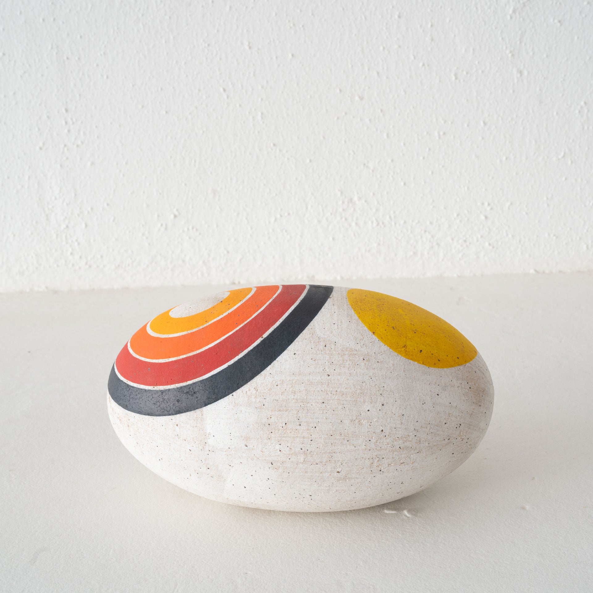 Shiva stoneware rock is hand painted with Rainbow Rings and Yellow Sun