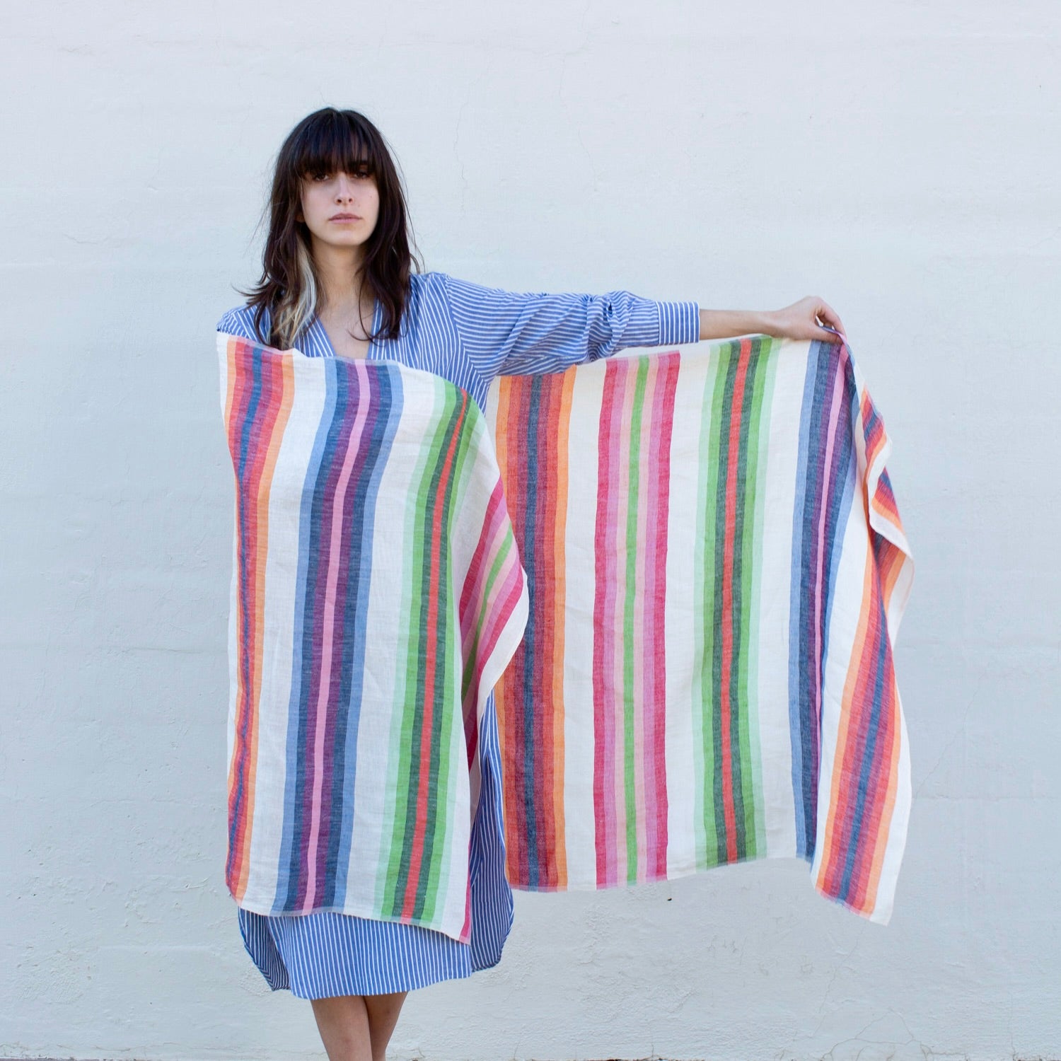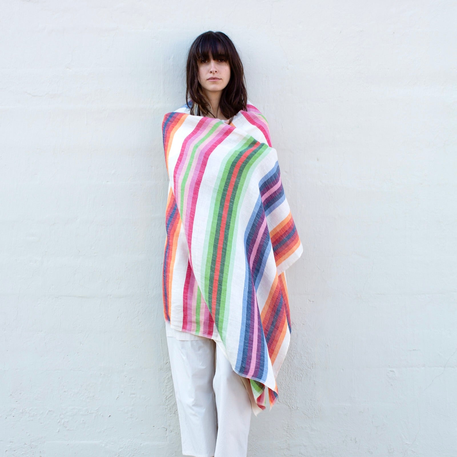 Khadi has long been known for its ability to keep the wearer warm in the winter and cool in the summer. The inherent variances of the fabric reflect the beauty of the involved, handwoven Khadi process.They are woven exclusively for us and have a super soft hand. Perfect for wrapping yourself up in on a cool desert night.