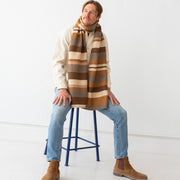 Our Khadi desert scarves are hand-spun, hand-woven cloths from India through fair trade co-ops, composed of a 90% wool weft and 10% cotton warp. Wool and cotton are first spun into yarn on a charkha, a spinning wheel, and then hand-dyed exclusively for Garza Marfa. The yarn is then woven on a handloom to produce our scarves designed by us in Marfa, Texas.