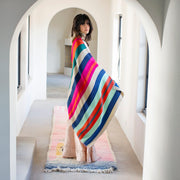 Our Khadi desert shawls are hand-spun, hand-woven cloths from India through fair trade co-ops, composed of a 90% wool weft and 10% cotton warp. Wool and cotton are first spun into yarn on a charkha, a spinning wheel, and then hand-dyed exclusively for Garza Marfa. The yarn is then woven on a handloom to produce our shawls designed by us in Marfa, Texas.