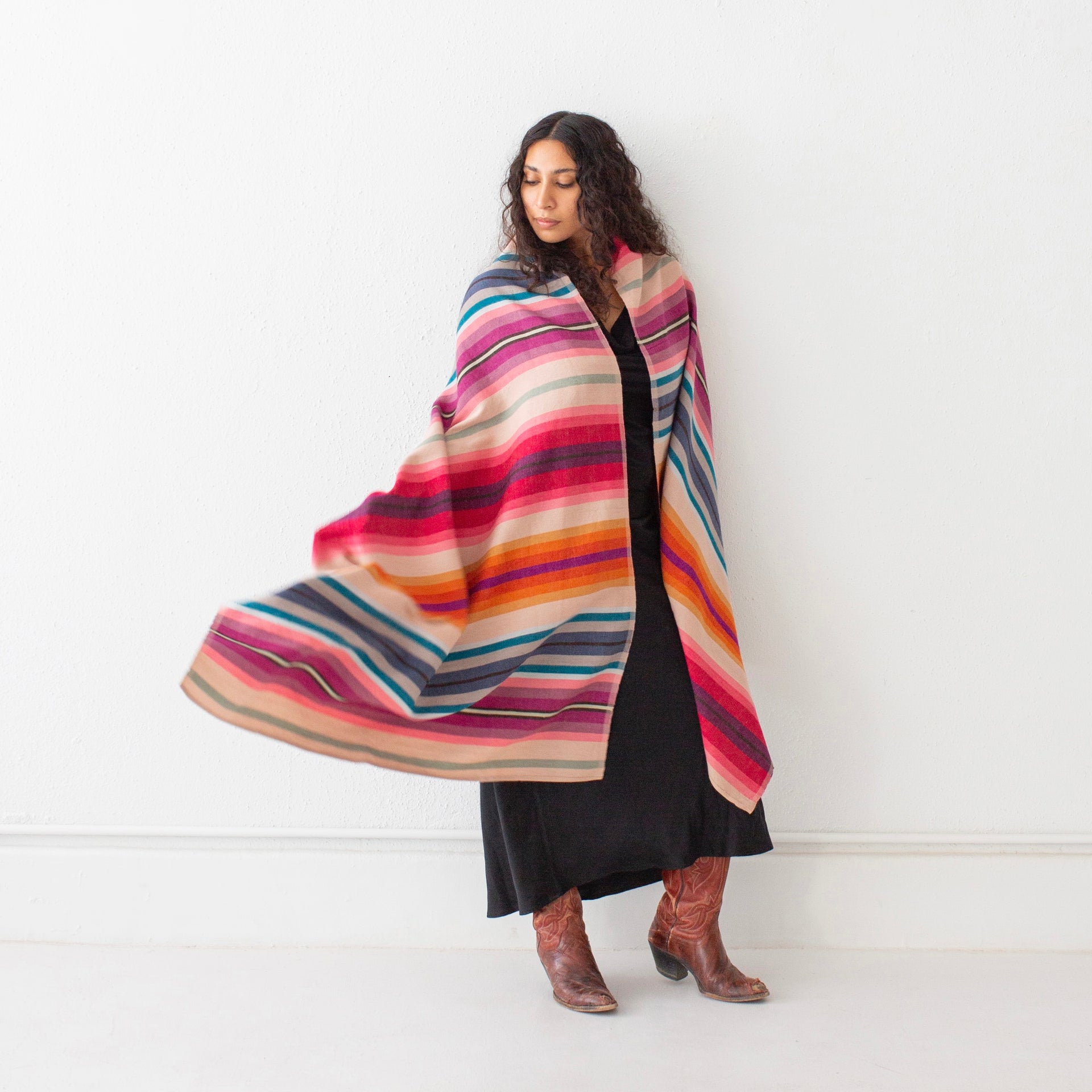 Our Khadi desert shawls are hand-spun, hand-woven cloths from India through fair trade co-ops, composed of a 90% wool weft and 10% cotton warp. Wool and cotton are first spun into yarn on a charkha, a spinning wheel, and then hand-dyed exclusively for Garza Marfa. The yarn is then woven on a handloom to produce our shawls designed by us in Marfa, Texas.