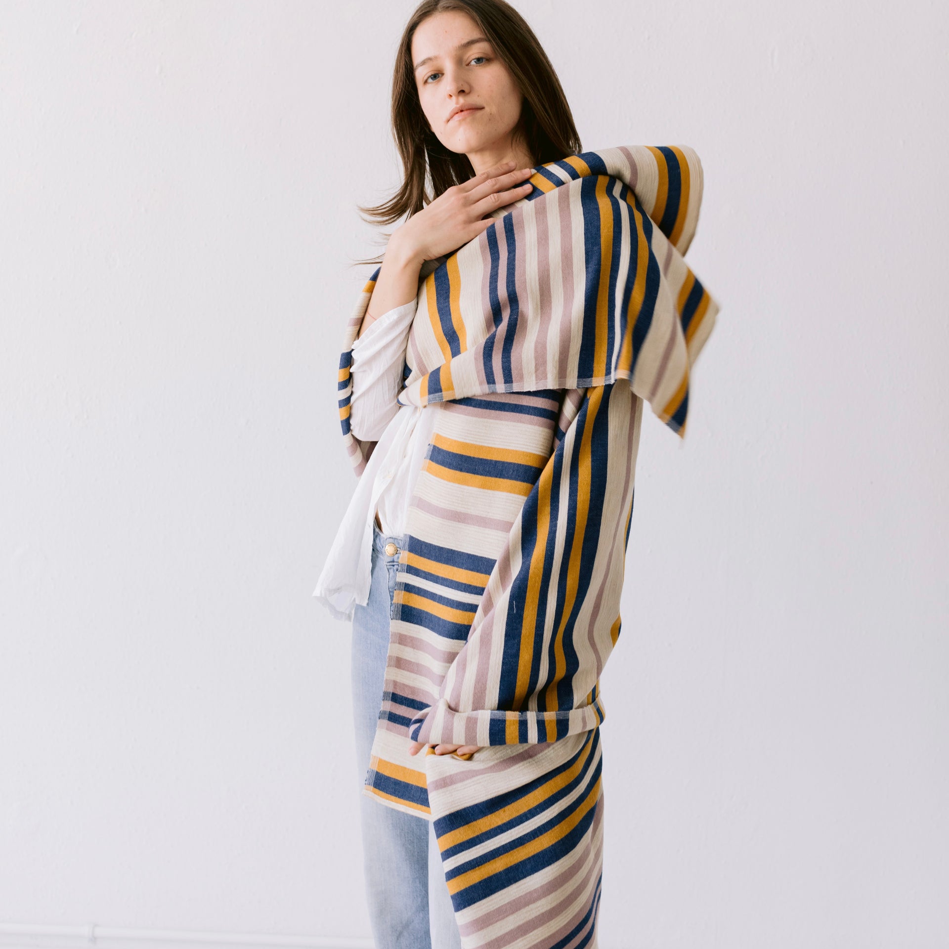 Khadi has long been known for its ability to keep the wearer warm in the winter and cool in the summer. The inherent variances of the fabric reflect the beauty of the involved, handwoven Khadi process. They are woven exclusively for us and have a super soft hand. Perfect for our cool desert nights.
