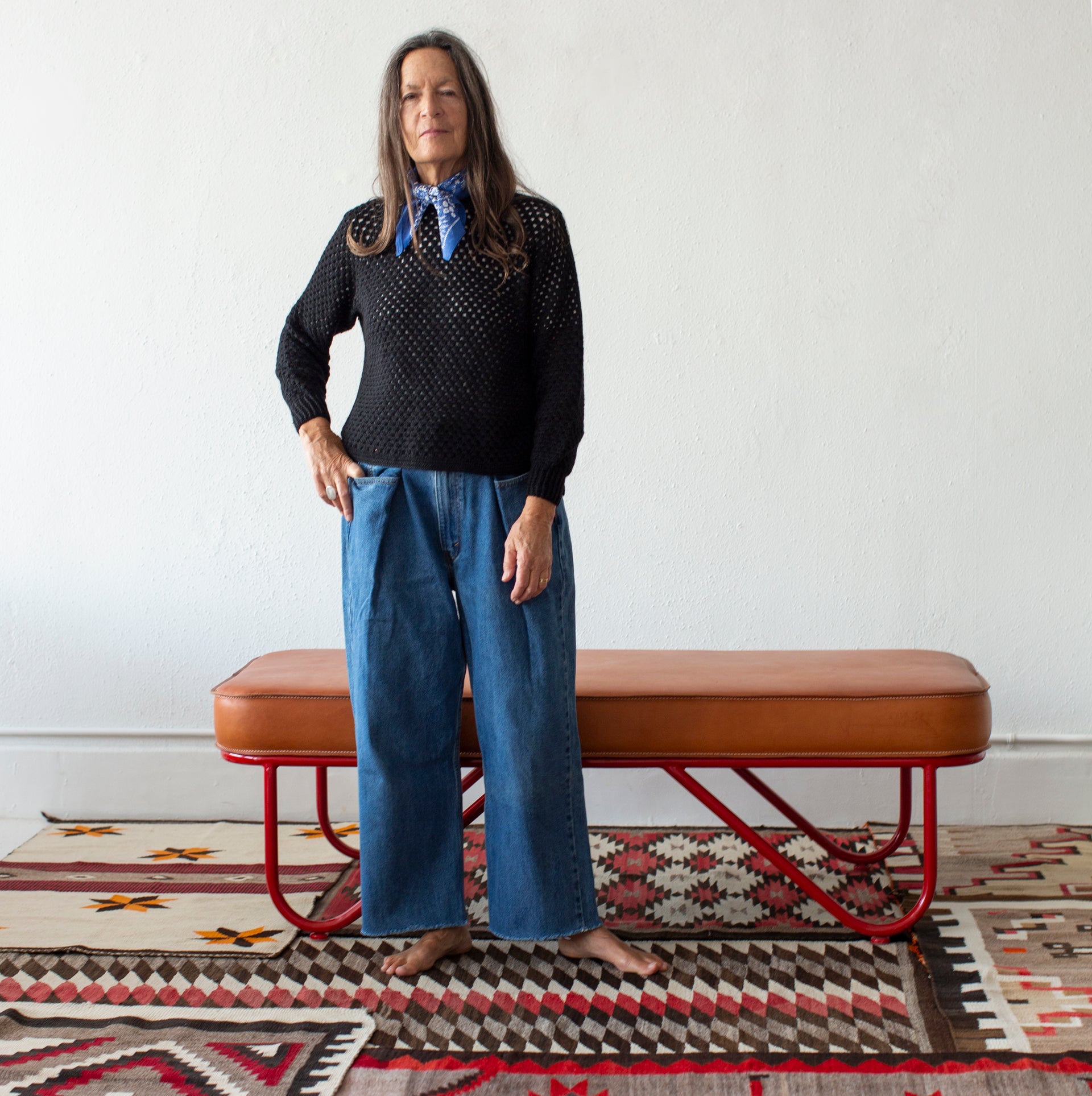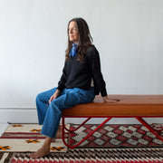 Classic with a twist, this super soft sweater is hand crocheted in Peru by artisans using locally sourced baby Alpaca. Open weave creates texture and air flow. Boxy crop, high crew neckline with long side slits.