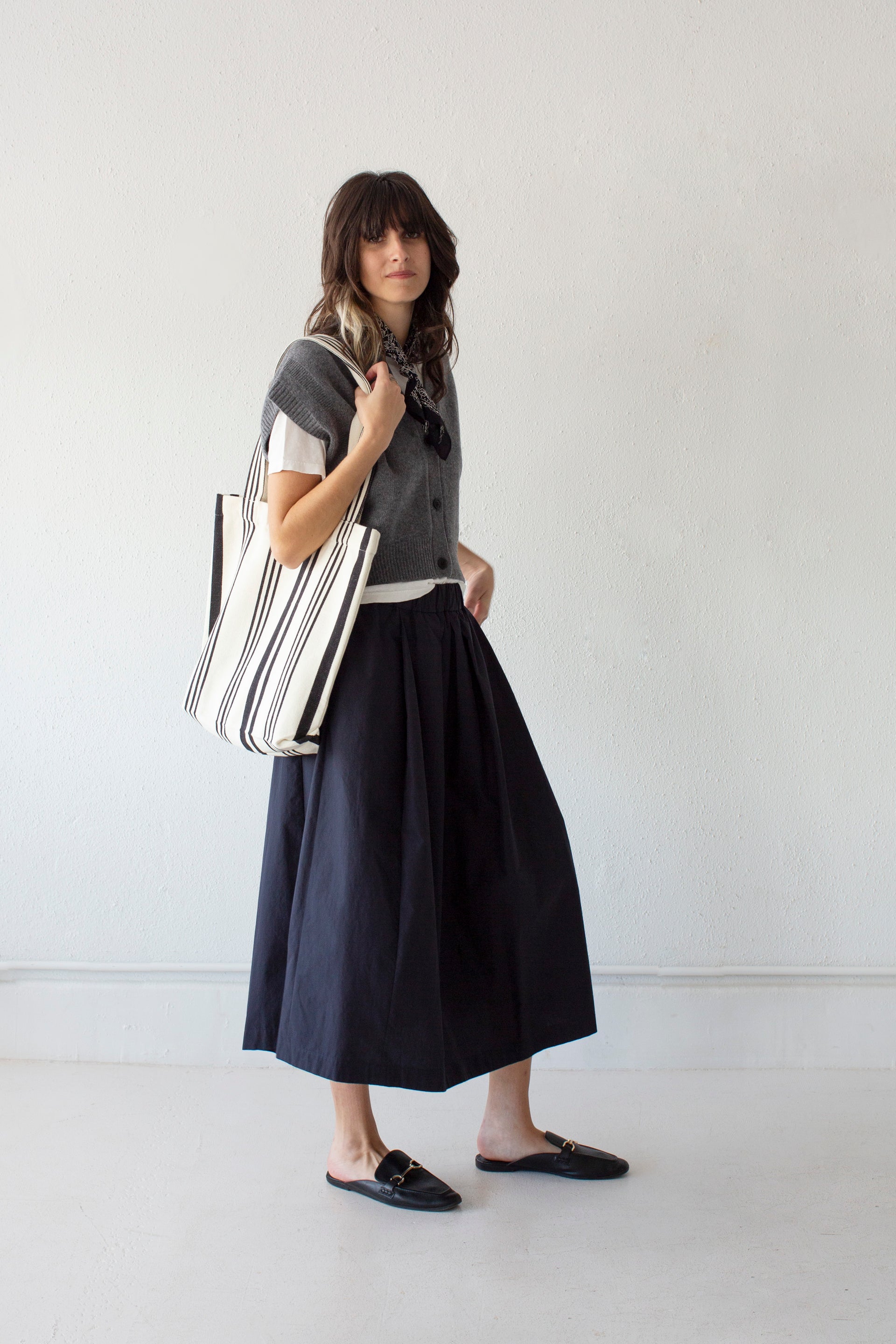 Garza Marfa Cotton Canvas Tote: Black + Cream Large Ticking