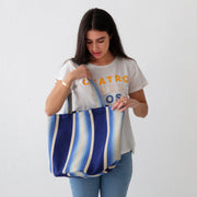Garza Marfa Cotton Canvas Tote: Indigo Ombre Stripe