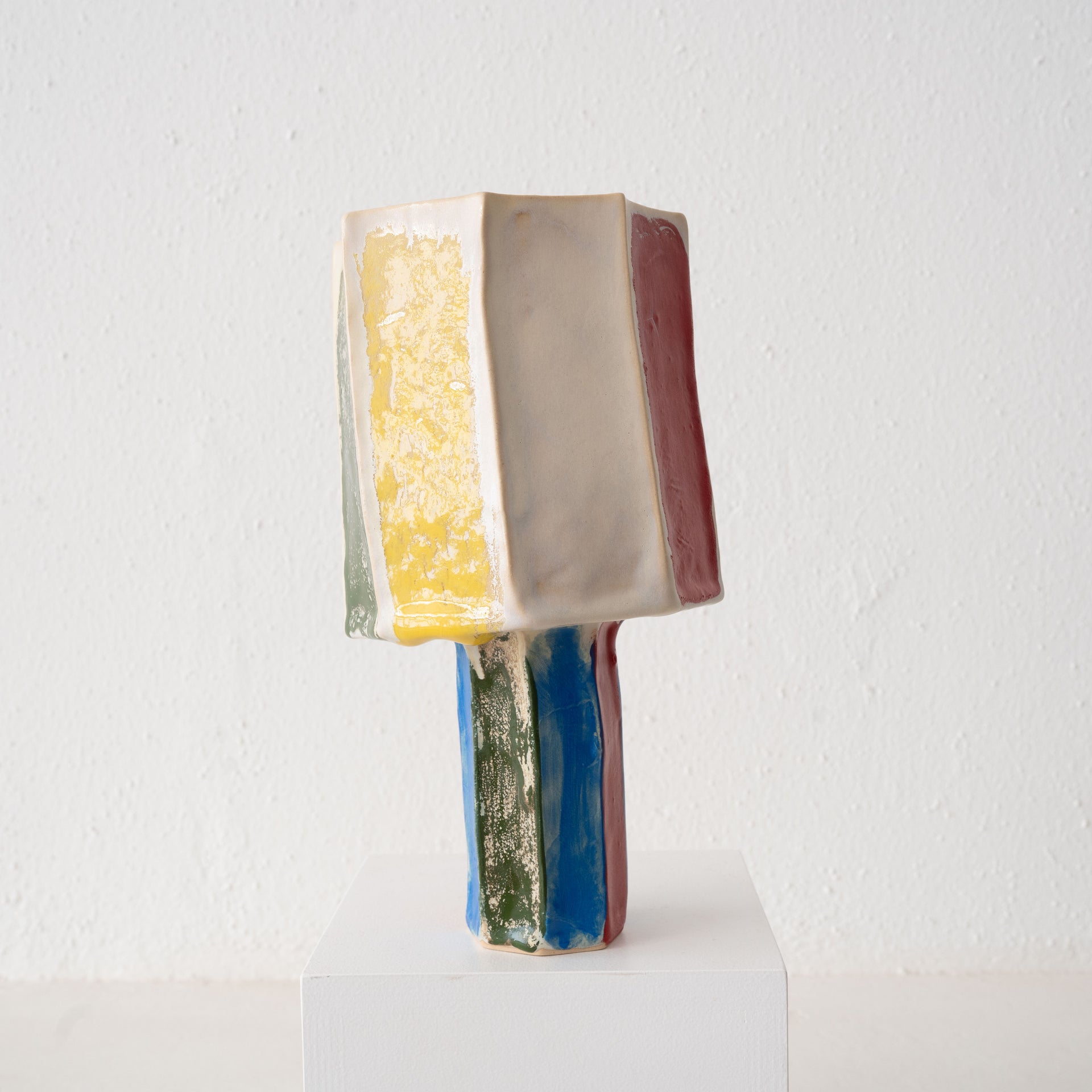 Hand-thrown, stoneware with hand glazed pattern. Matte finish.
