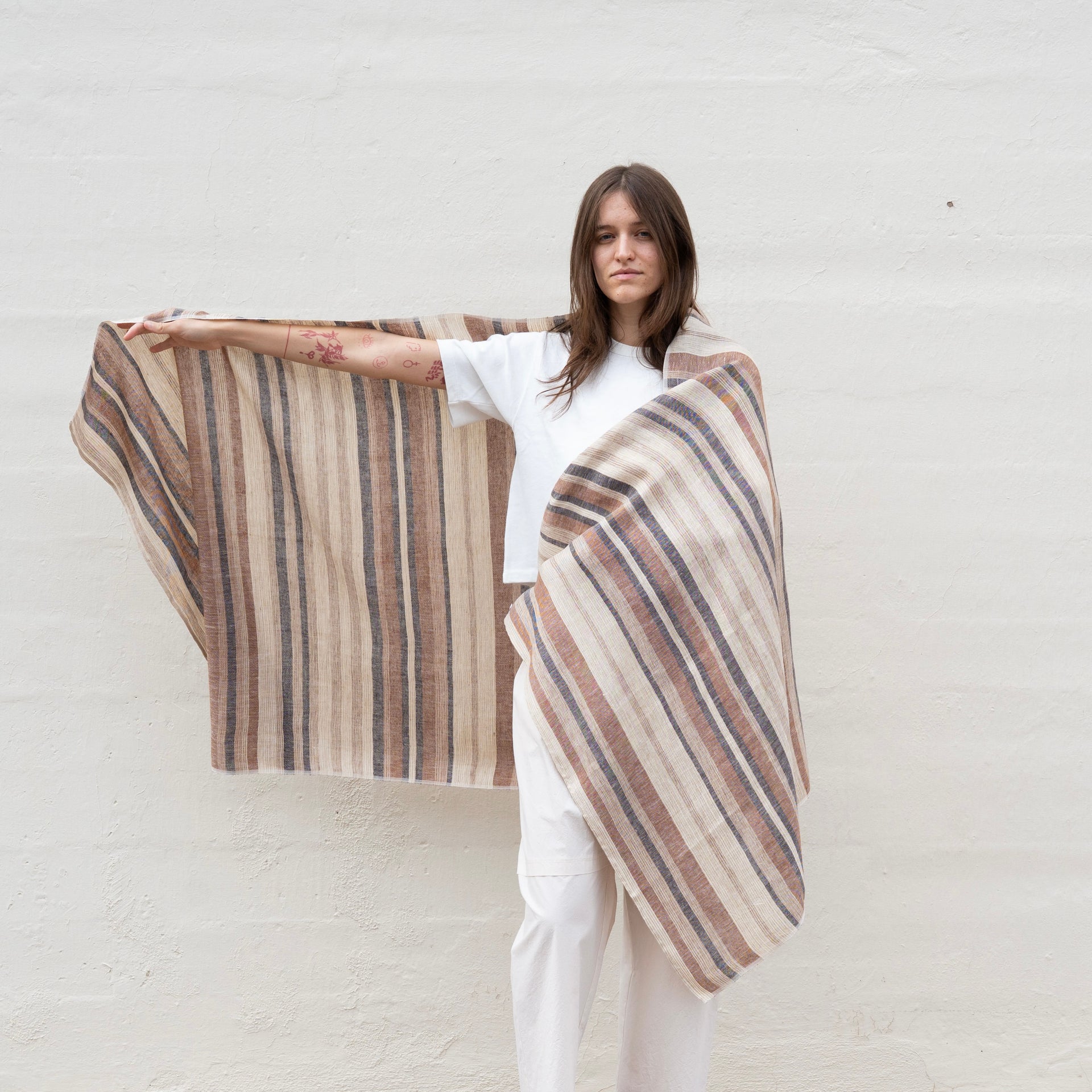 Khadi has long been known for its ability to keep the wearer warm in the winter and cool in the summer. The inherent variances of the fabric reflect the beauty of the involved, handwoven Khadi process.They are woven exclusively for us and have a super soft hand. Perfect for wrapping yourself up in on a cool desert night.